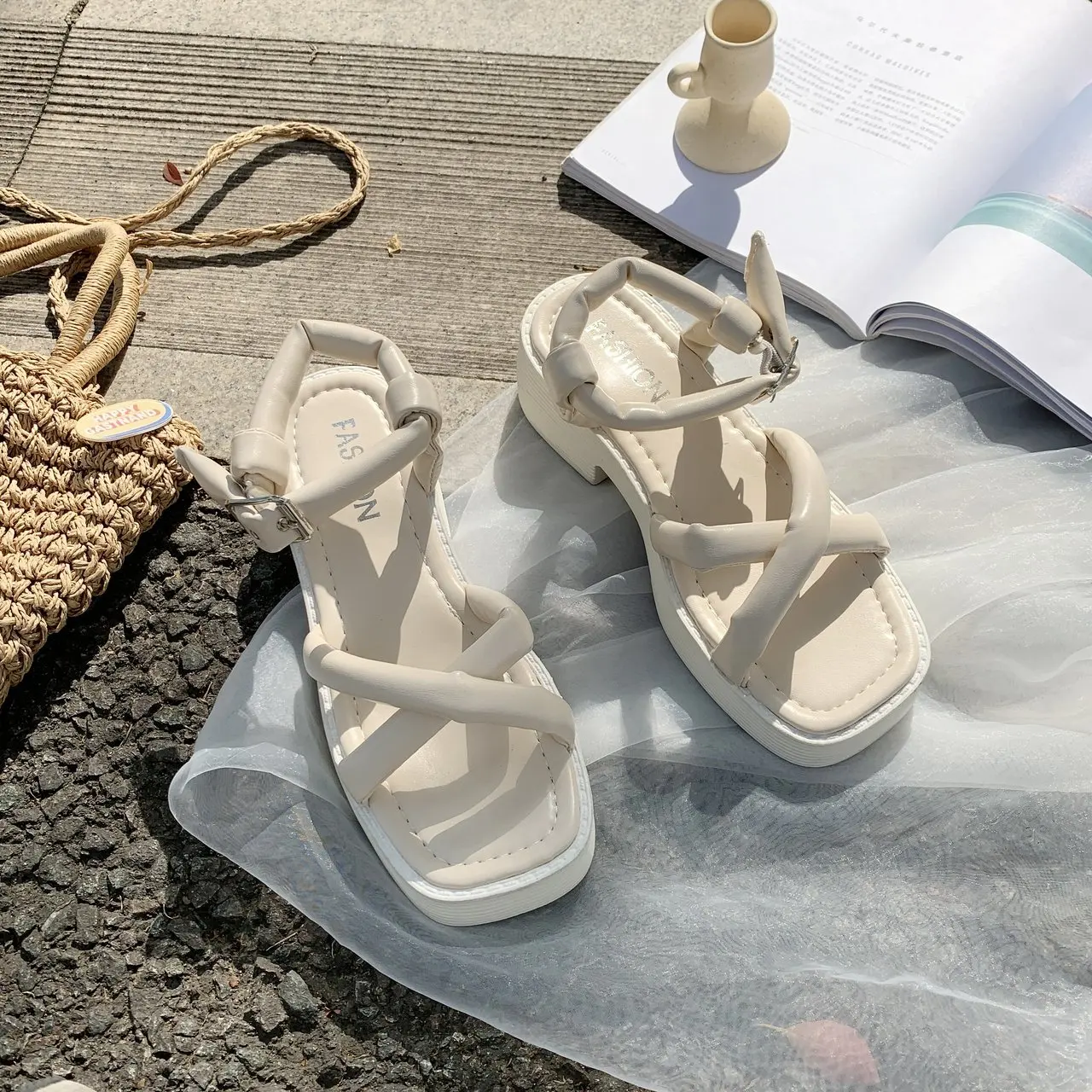 Женские сандалии-гладиаторы на платформе; Коллекция 2021 года; Летн...