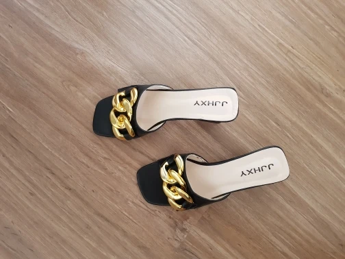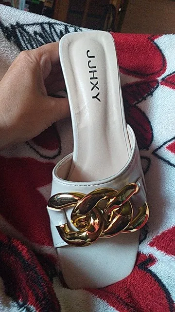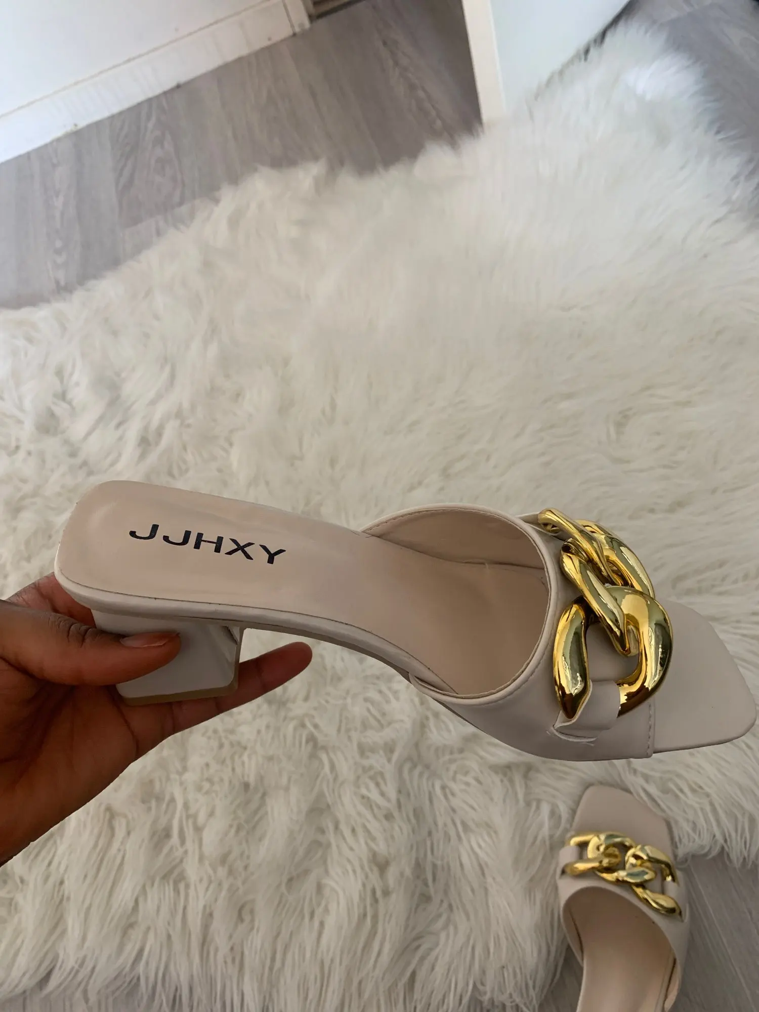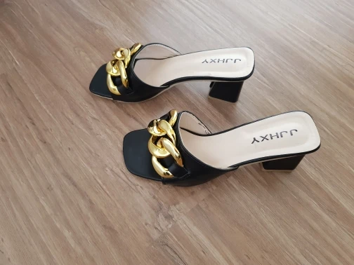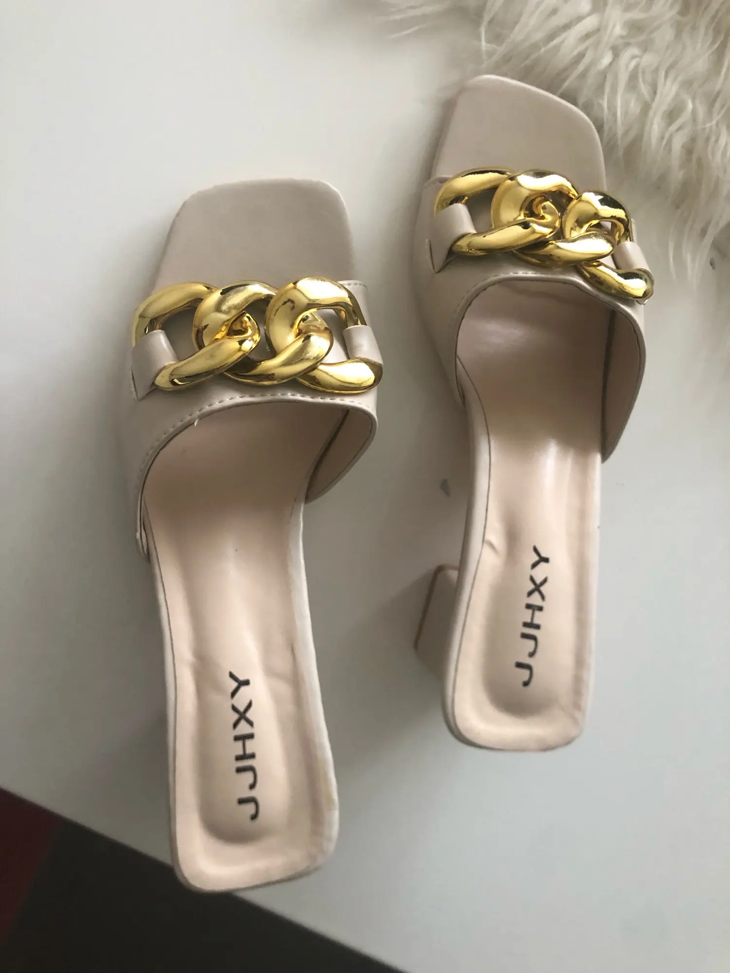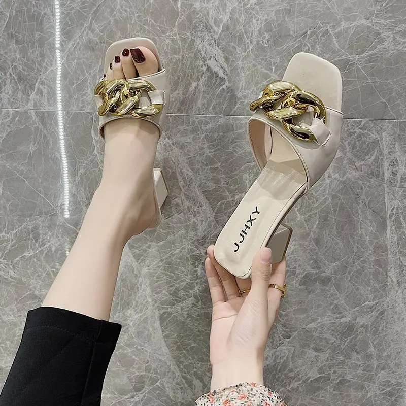 Шлепанцы женские летние, на каблуке 6 см, с цепочкой
