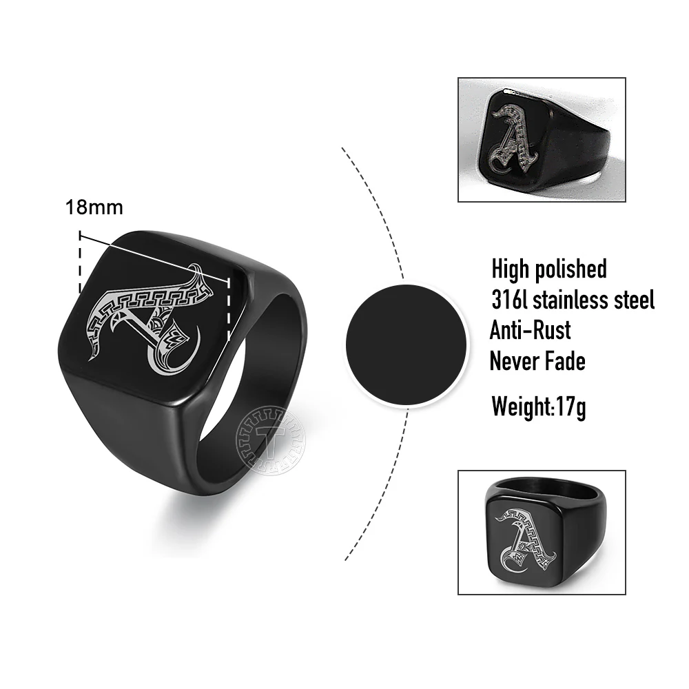 Персонализированные тяжелые A-Z кольцо с начальным штампом для мужч...