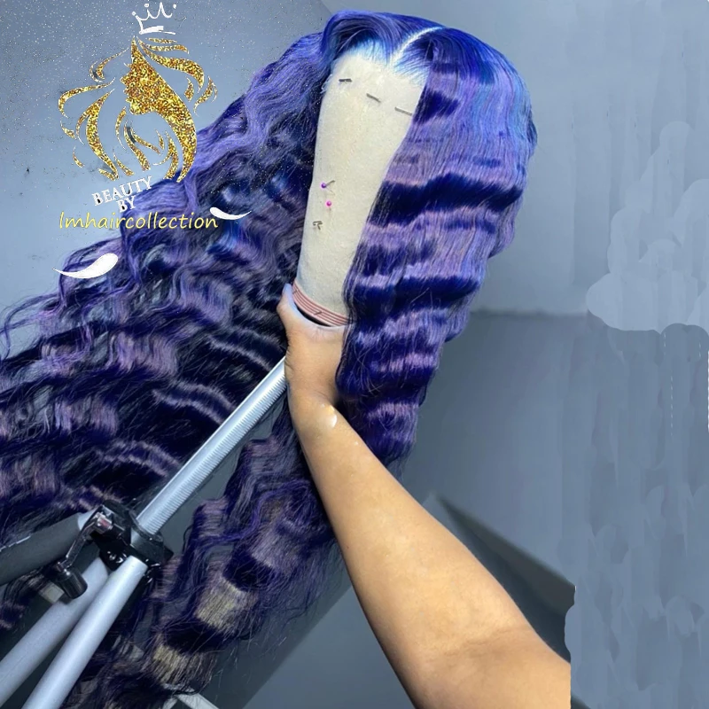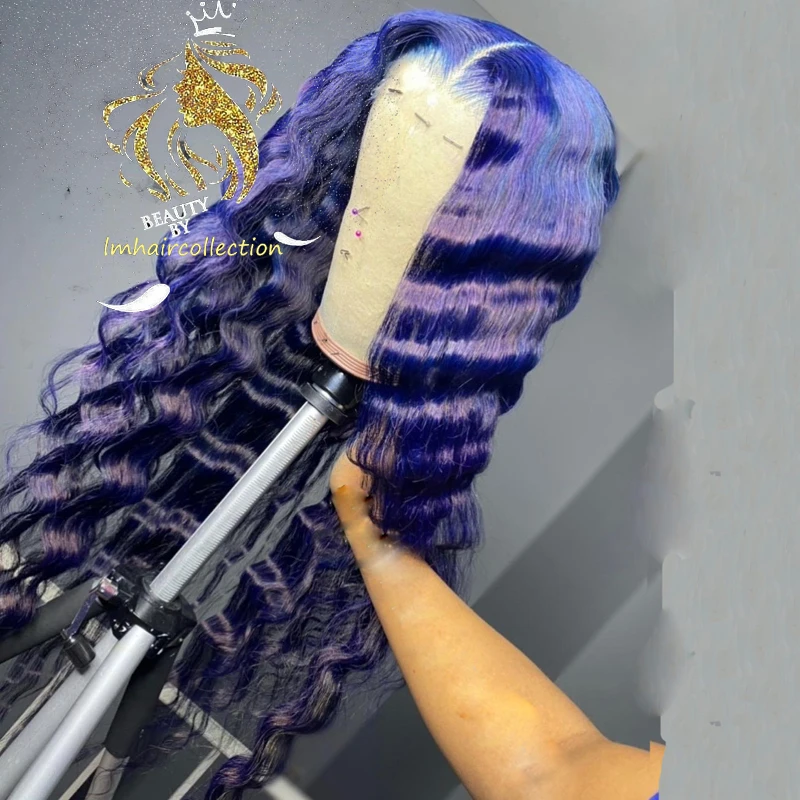 Синий парик, парик из человеческих волос, синяя глубокая волна, Цветные Волнистые 13x4, парик на сетке спереди, предварительно выщипанные с детскими волосами, безклеевые парики на сетке спереди