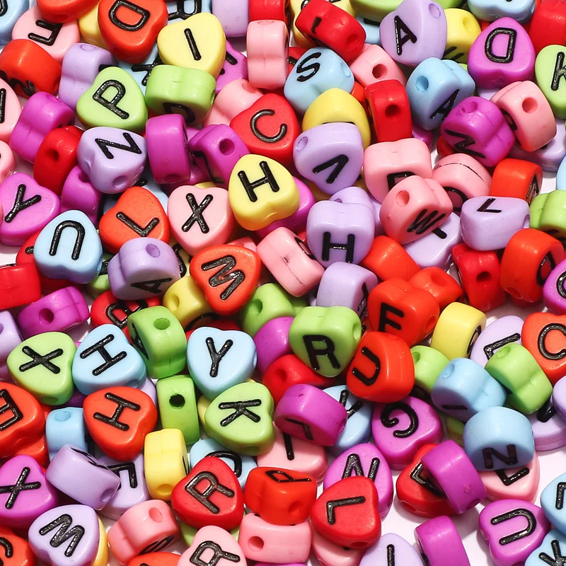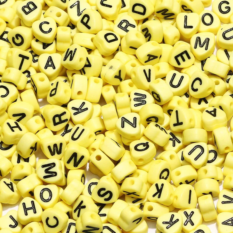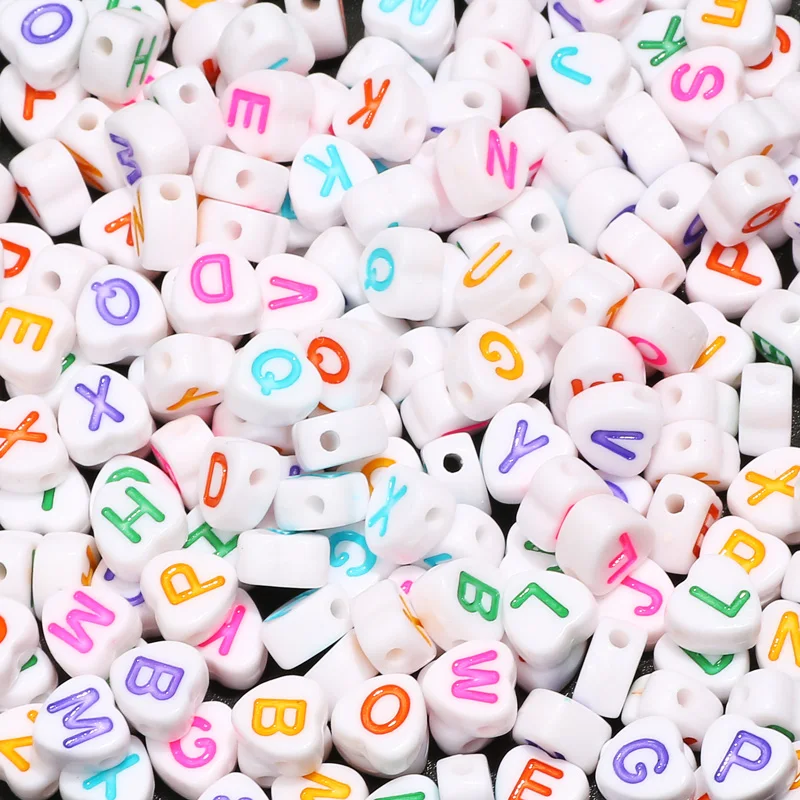Акриловые бусины с смешанными буквами, бусины в форме сердца, бусин...