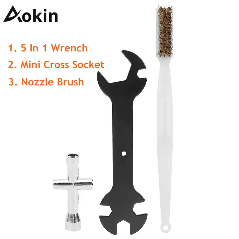 Набор инструментов для уборки для 3D-принтера Aokin 3 шт., многофункциональный гаечный ключ 5 в 1 + мини-крестовое гнездо + щетка насадки дляMK8MK10 M2000
