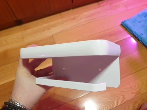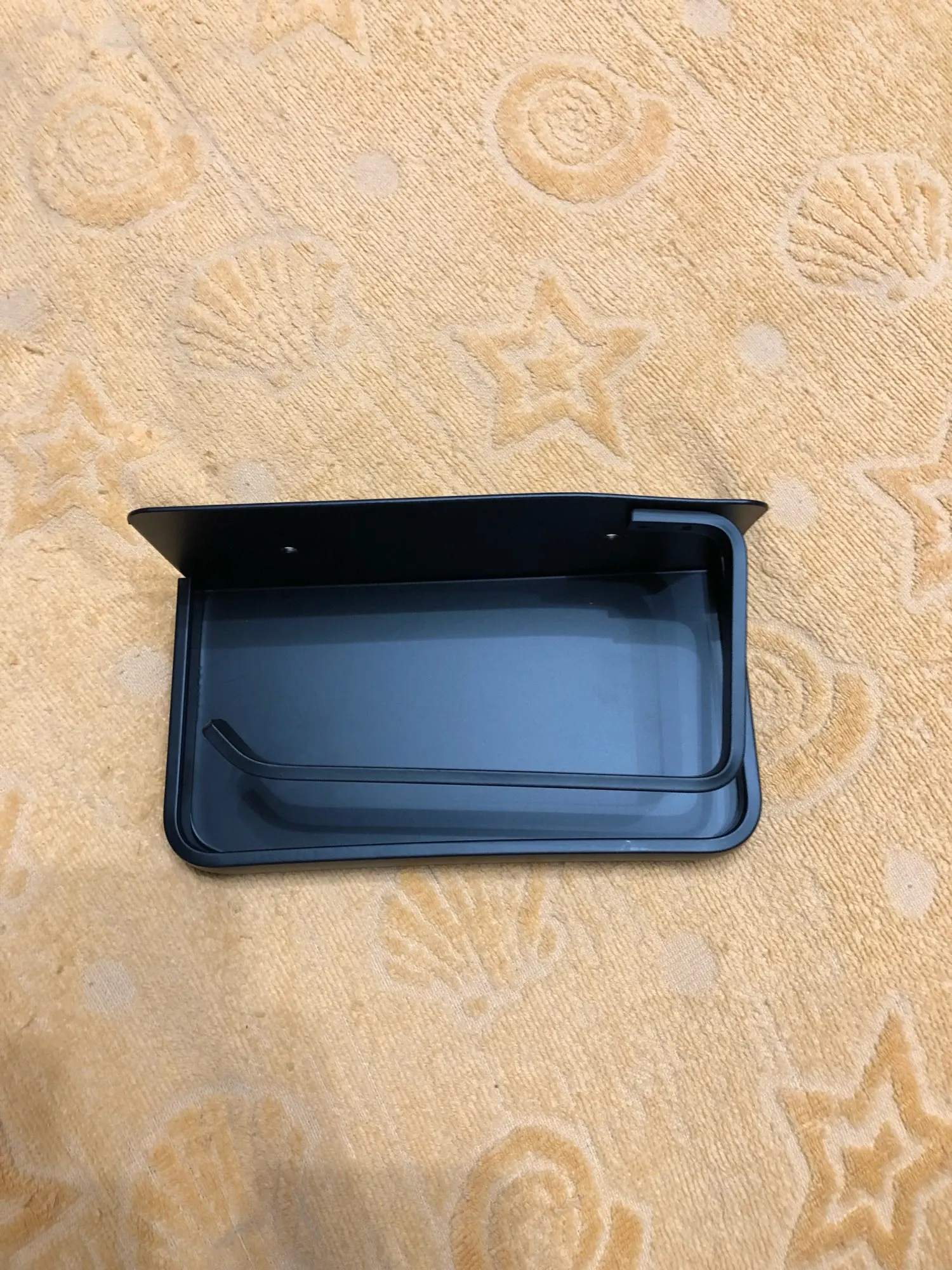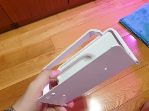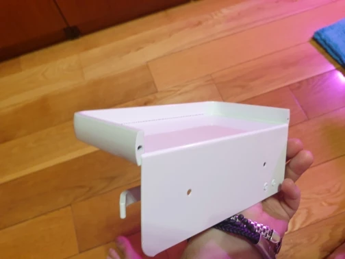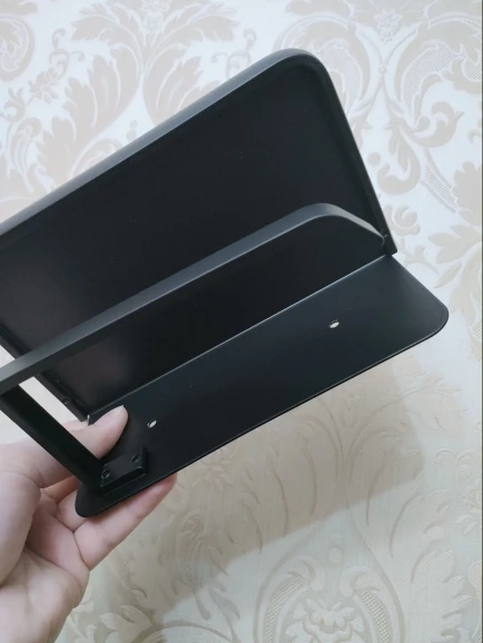 Доставка заняла чуть больше 2 недель. Упакован был надёжно. Держатель лёгкий, сделан аккуратно, поверхность бархатистая. Полка довольно большая. Очень понравился.