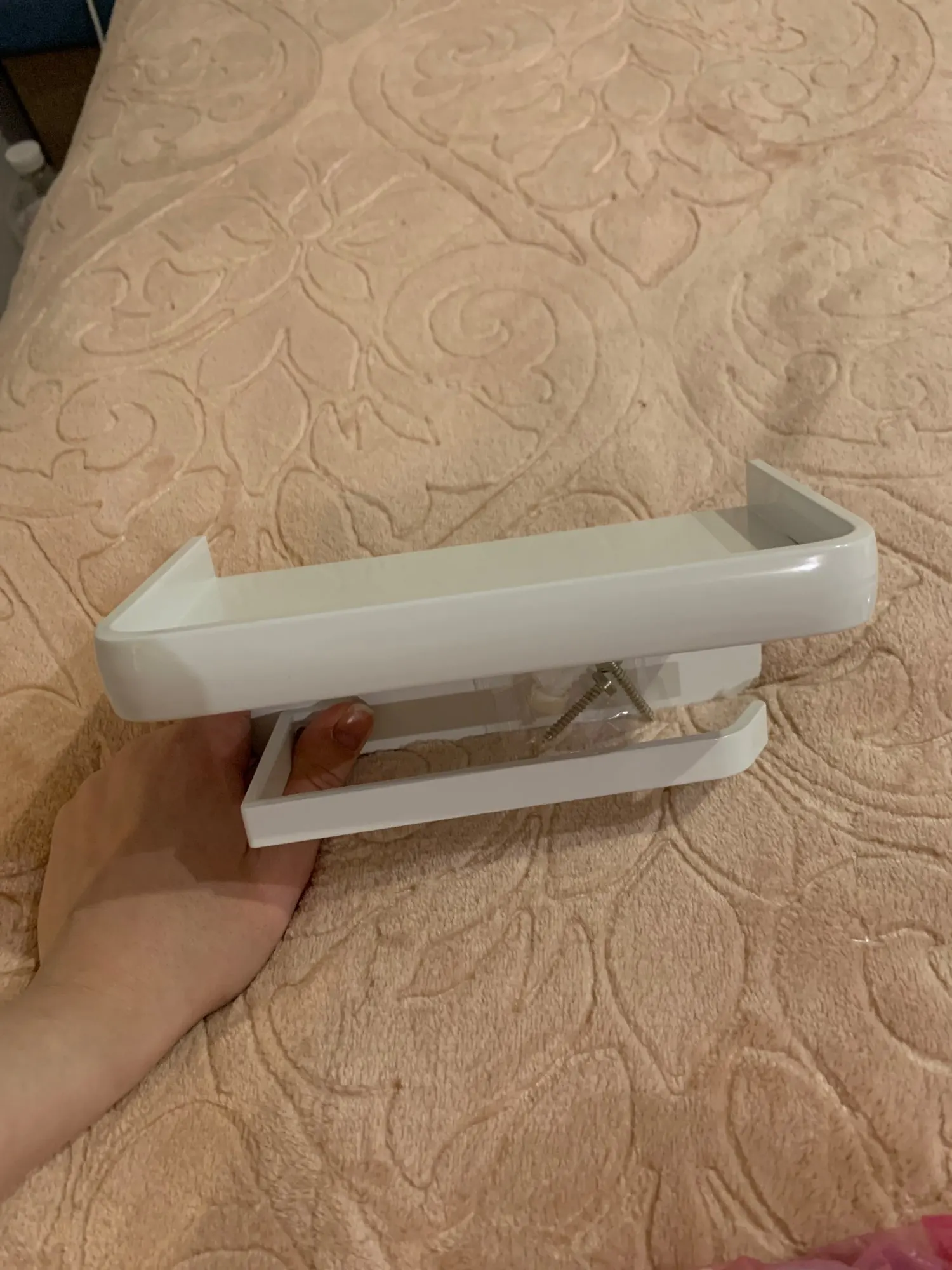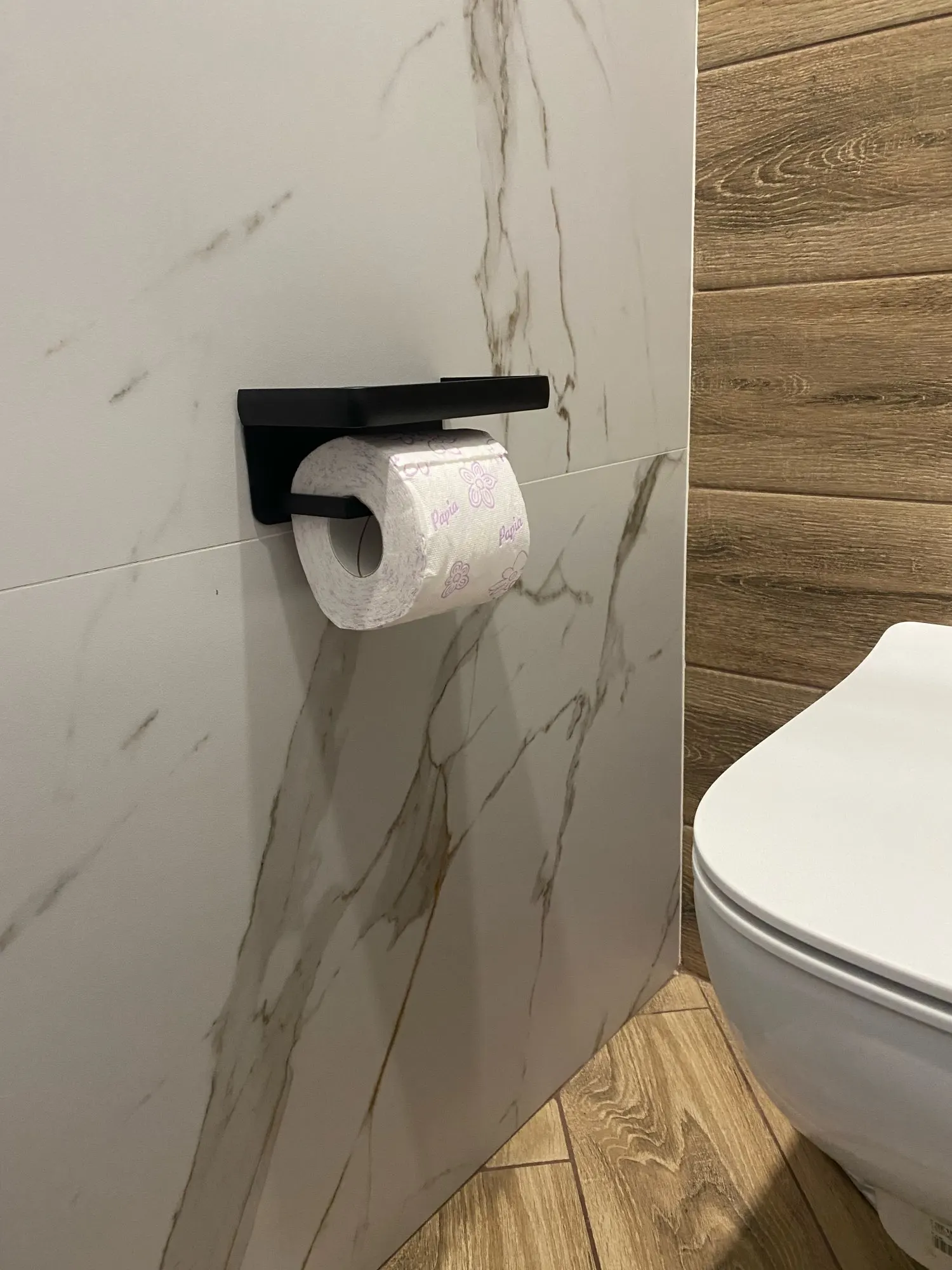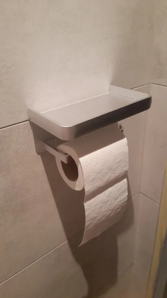 Классный держатель, главное рулон бумаги хорошо крутиться, а то сомневалась, что маленькое расстояние между полкой и штырем.