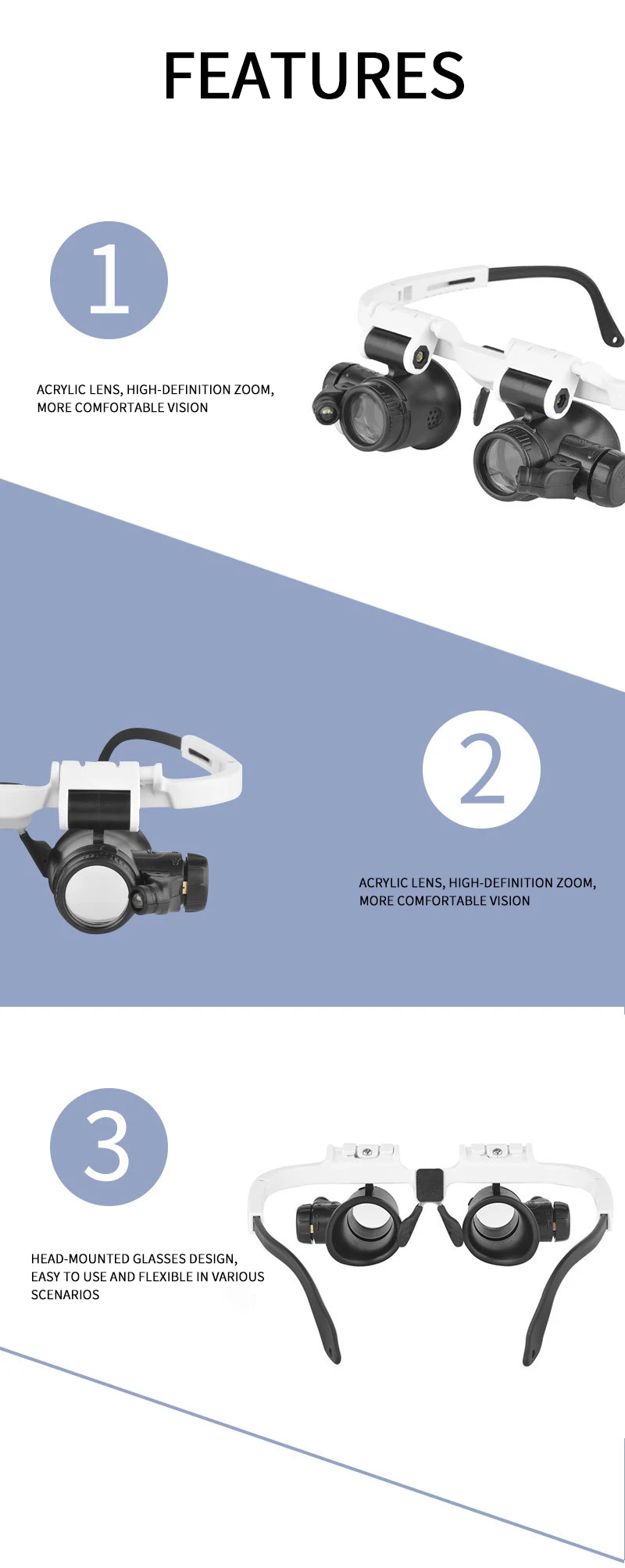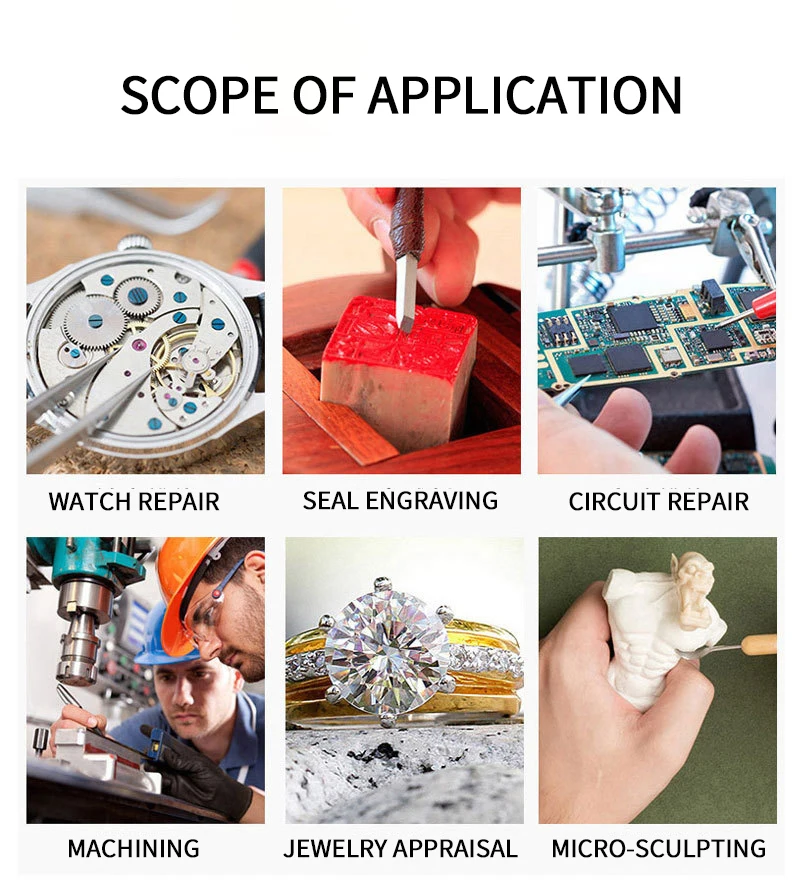 7. Широкий спектр применения: подходит для чтения книг, покраски, шитья, декоративных растений, ремонта различных прецизионных деталей, ремонта часов, ремонта мобильный телефон, ремонта печатной платы, оценки ювелирных изделий и т. д.