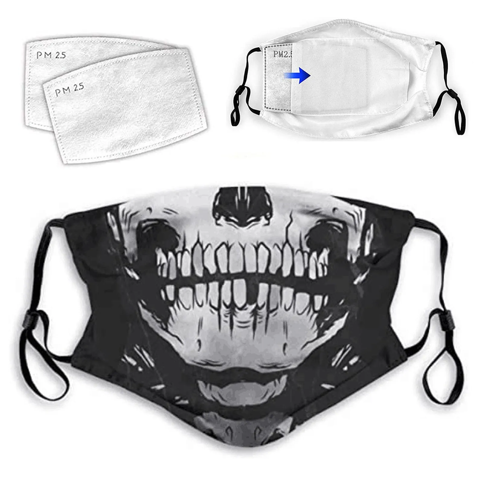 Маски для лица Pm2.5 с 3D-принтом черепа для взрослых, многоразовые...