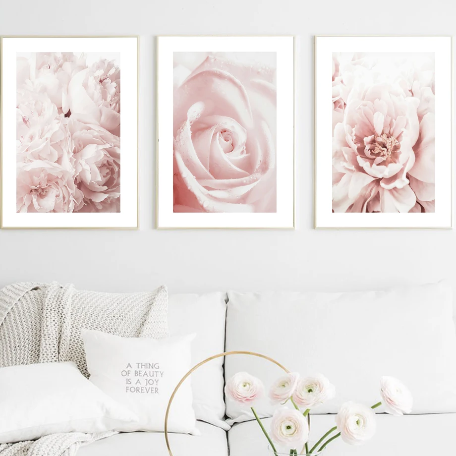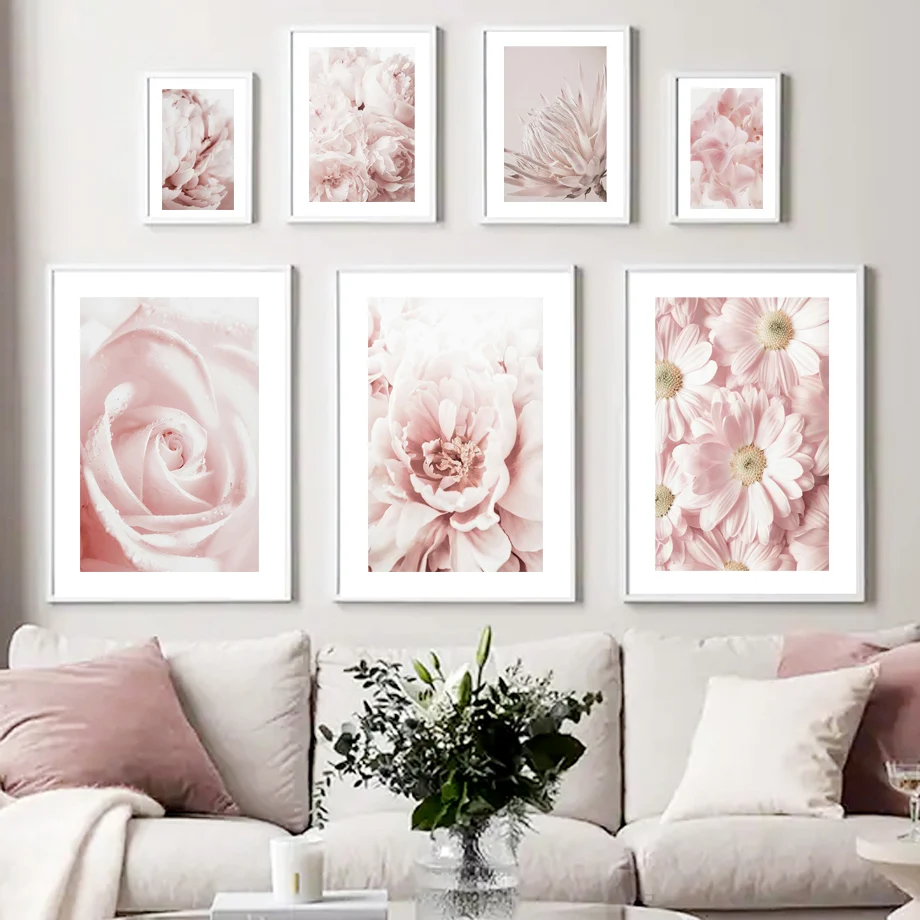 Картина на холсте с цветущими цветами, розами, пионами, тюльпанами, маргаритками, постеры и принты для декора гостиной
