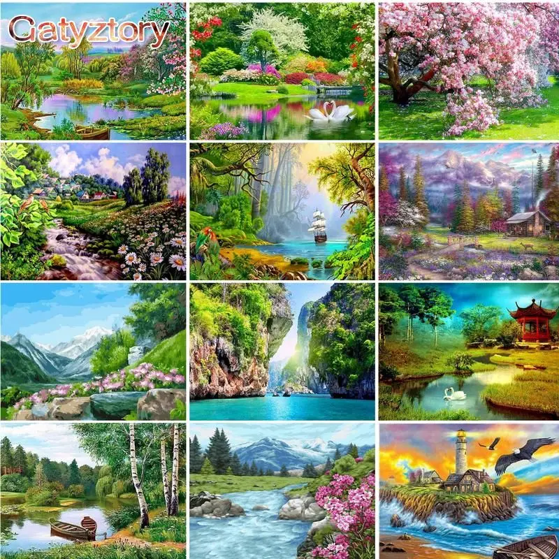 GATYZTORY 40x50 см, акриловая краска по номерам, пейзаж, масляная к...