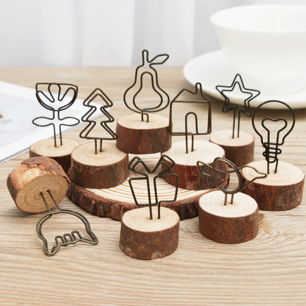 Креативная деревянная основа, зажим для фоторамки, железо, держатель для карт, украшение для рабочего стола дома, папки Сообщений, круглая рамка, инструменты для декора