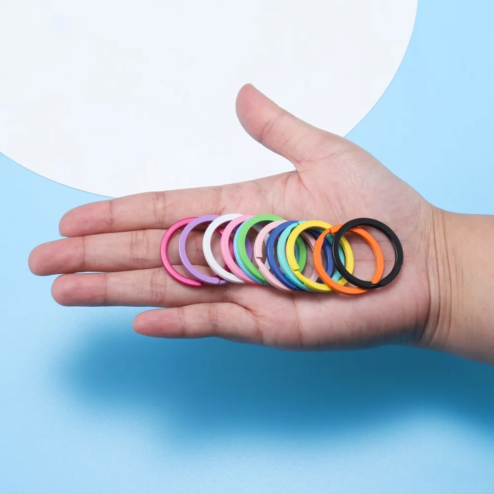 10 шт.лот, цветное кольцо для ключей, круглая плоская линия, многоцветная цепочка для ключей, брелок для ключей, брелок для самостоятельного изготовления ювелирных изделий, оптовая продажа