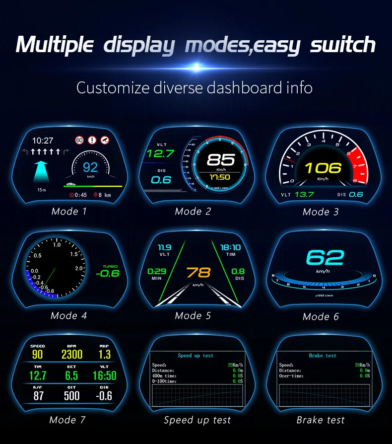 Указанная функция без навигации не включает функцию навигации1. Включает все функции HUD:Такие как скорость, об/мин, температура воды, напряжение батареи, расстояние вождения, время вождения, высота, Сжимаемость топлива, Clcok, направление движения, расстояние вождения, спутниковые номера, давление турбины, соотношение между воздушным топливом, входным давлением, переключателем километра/миля, потоком данных, динамическим испытанием, областью отображения камеры скорости, направлением стрелки навигации, подключением к мобильному устройству, системой OBS, системой GPS.2. Многофункциональная функция сигнализации:Сигнализация скорости, сигнализация об/мин, сигнализация напряжения, DTCS сигнализация, напоминание об усталости вождения.3. Поддержка нескольких языков по всему миру:Состояние дороги, умный анализ данных, предпочтительный Маршрут Путешествия, Обновление карты, отображение дорожной дорожки