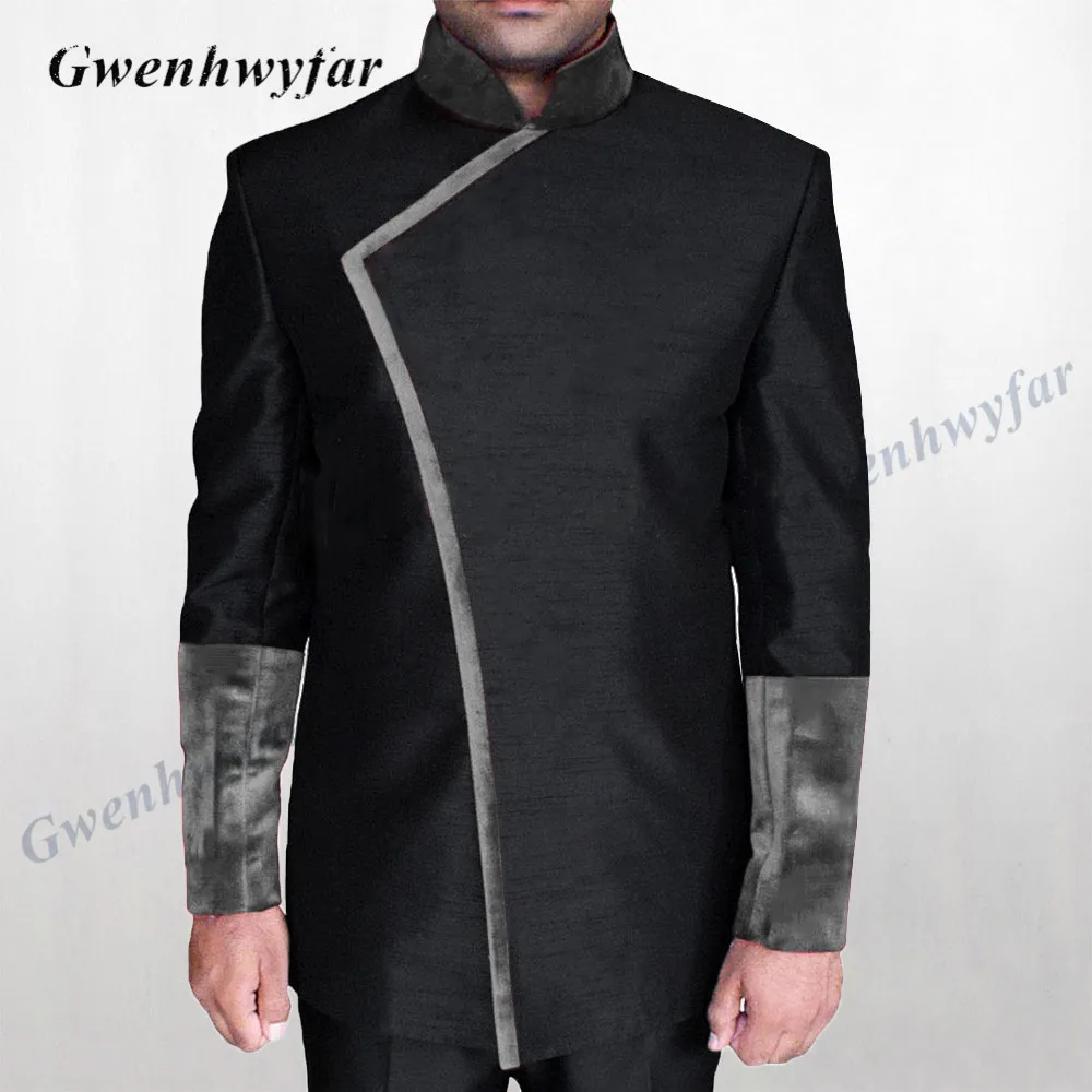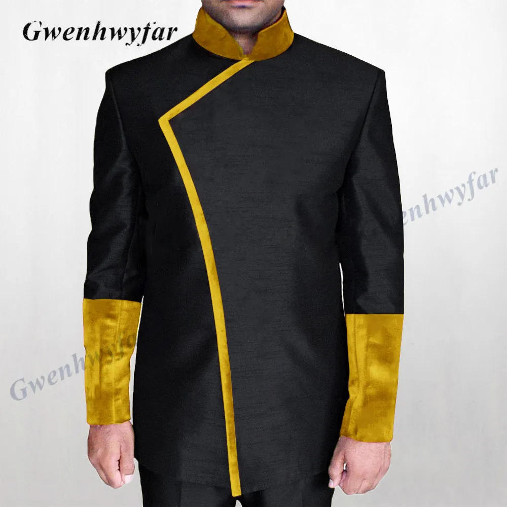 Гвенвифар в африканском стиле Стиль Для мужчин Нарядные Костюмы для свадьбы выпускного вечера белая Вельветовая подставка отворот китайского стиля блейзера и штанов костюм для жениха костюм черный смокинг для мальчиков