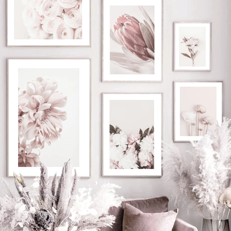 Цветущий цветок роза цветочный Протей пион пастельный скандинавский плакат настенная Художественная печать Картина на холсте, украшение на фотографии для гостиной