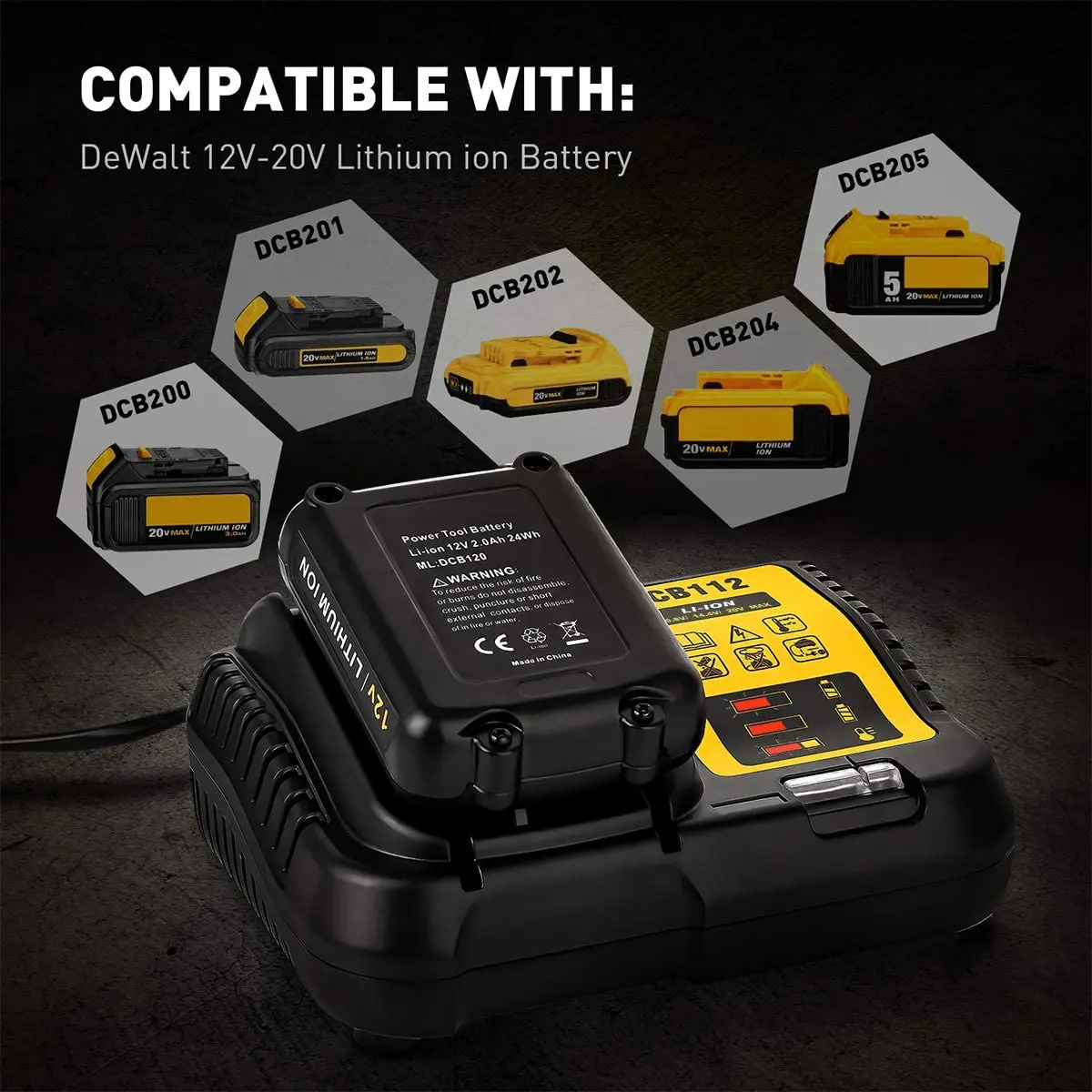 Зарядное устройство DCB112 18 в для литий-ионных аккумуляторов Dewalt 12-20 в, MAX DCB205 DCB206 DCB203BT DCB204BT DCB127 DCB101 DCB102