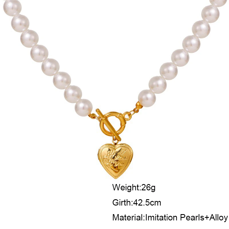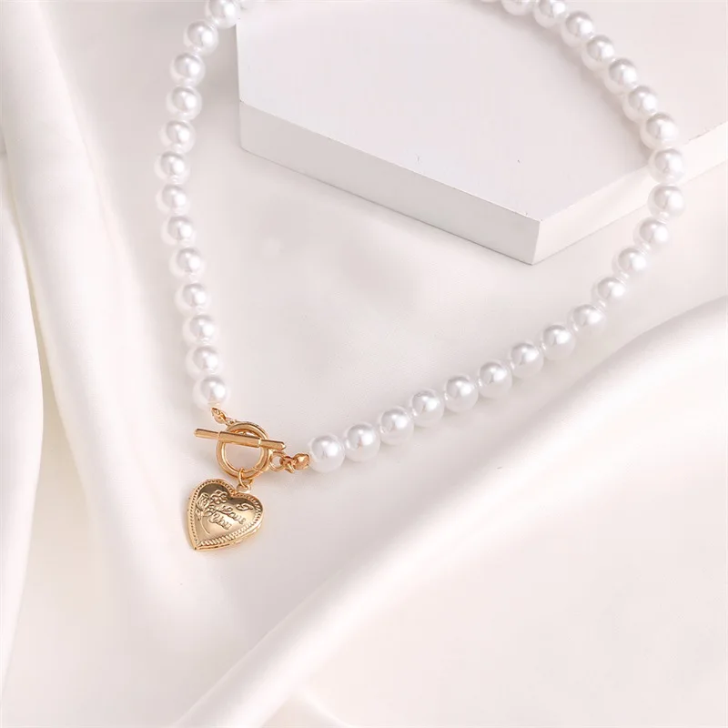 Ожерелье женское с кулоном в форме сердца, с искусственным жемчугом