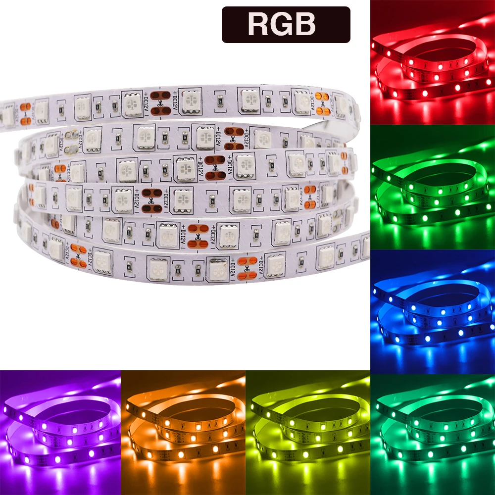 Гибкая светодиодная лента, 12 В, 24 В, 5050 RGB, 60 светодиодов sm, IP21, IP65, водонепроницаесветильник, белыйтеплый белыйкрасныйсинийзеленый, 5 м