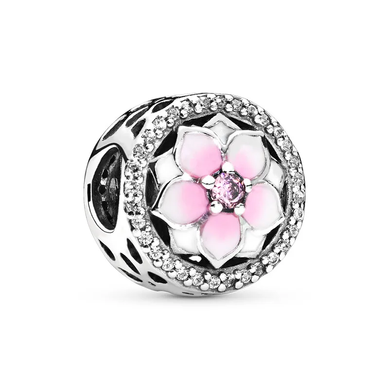 Женский серебристый, синий, розовый, яркий цветок, очаровательные бусины сделай сам, красивые бусины, подходят для оригинального Шарм-браслета сделай сам, ювелирные изделия
