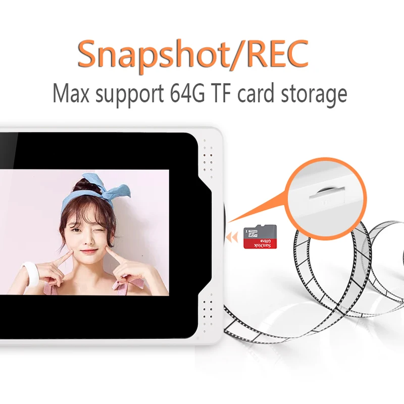 5. Когда кто-то звонит в дверной звонок, монитор, вставленный с sd-картой, будет записывать изображение или видео автоматически. Поддержка sd-карты, вы можете установить режим записи для видео. Когда sd-карта будет заполнена, самое раннее записанное видео будет удалено автоматически.