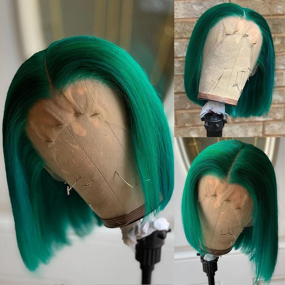 Зеленый Боб, человеческие волосы, кружевные передние парики, прямые, натуральный цвет, человеческие волосы, T часть, кружевные парики 180%, бразильские кружевные передние человеческие волосы, парик
