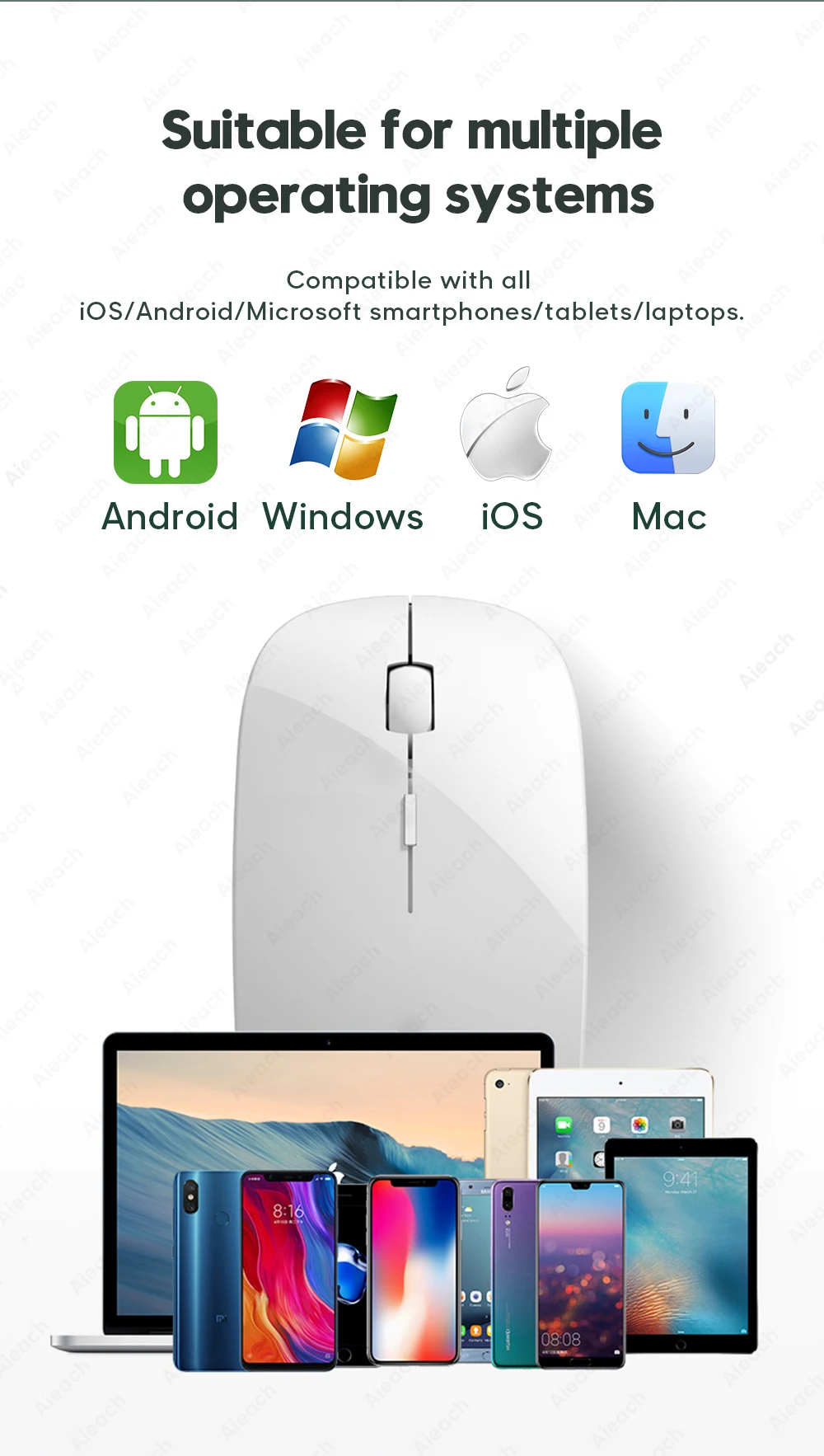 Беспроводная Bluetooth-мышь AIEACH для iPad, Samsung, Huawei, Lenovo, Android, планшетов на базе Windows, перезаряжаемая мышь для компьютера, Macbook