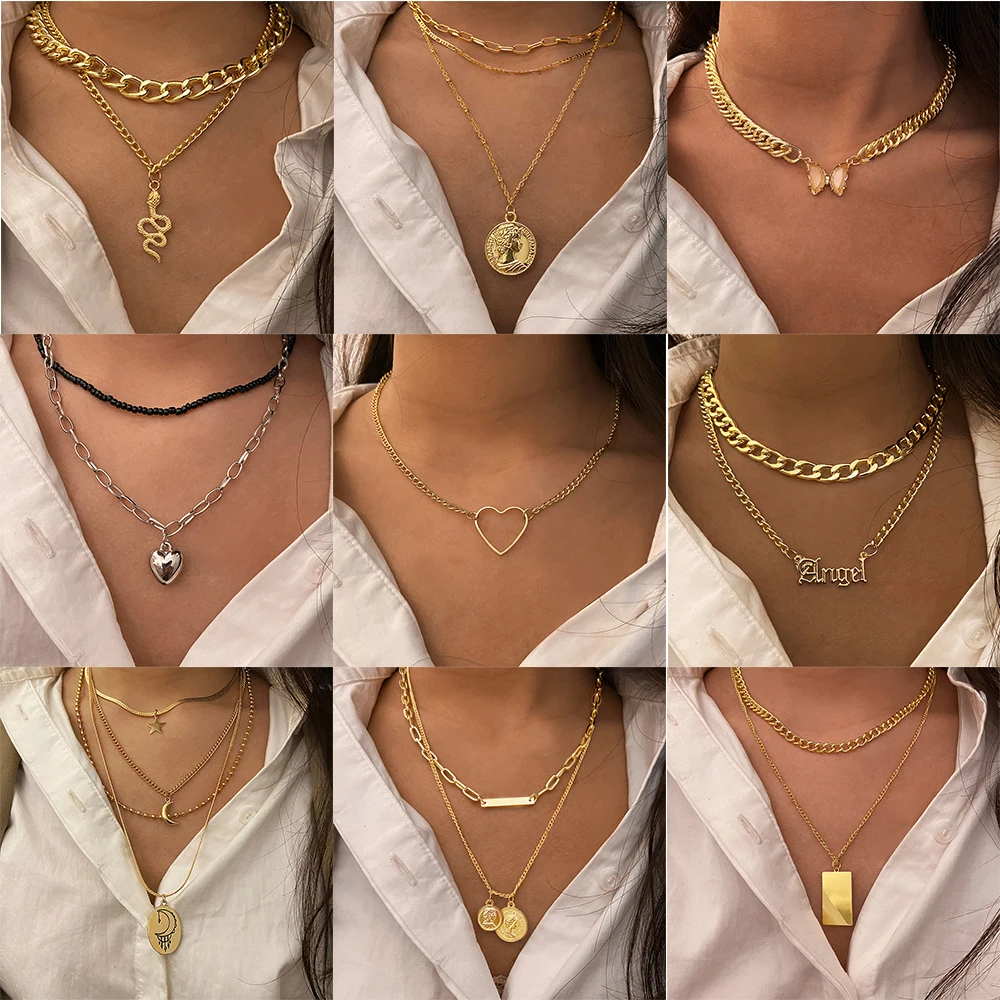Ретро-многослойная Змея цепи ожерелье для женщин, трендовые, золото, серебро, Цвет большой толстый форме плетённого кольца 2021 ювелирных изделий