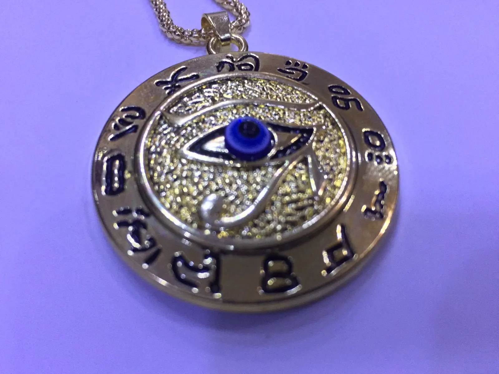 Ожерелье с круглой подвеской с узором глаза Хора в мусульманском стиле, мужское ожерелье, скользящая подвеска, металлическое ожерелье, амулет, аксессуары, ювелирные изделия