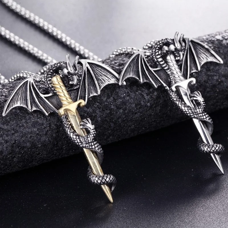 Ретро Pterodactyl Святого меча форма кулон ожерелье для мужчин Мода Дракон Пенда...
