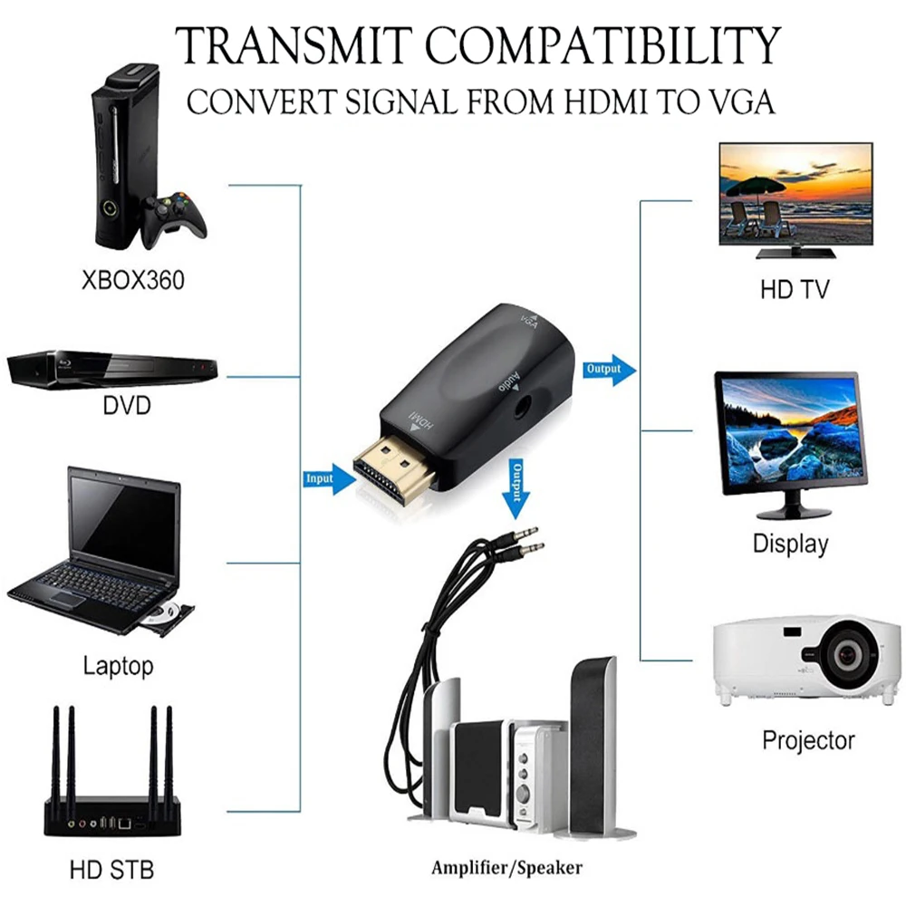 Адаптер VGA HD 1080P штекер-гнездо Аудио кабель конвертер для ПК ноутбука ТВ приставки кабеля проектора