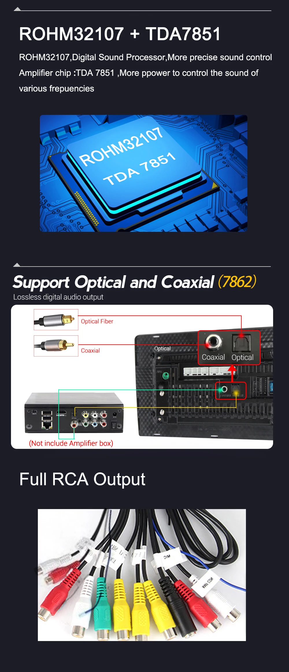 Устройство не поддерживает конфигурацию автомобиля со стандартным усилителем мощности.