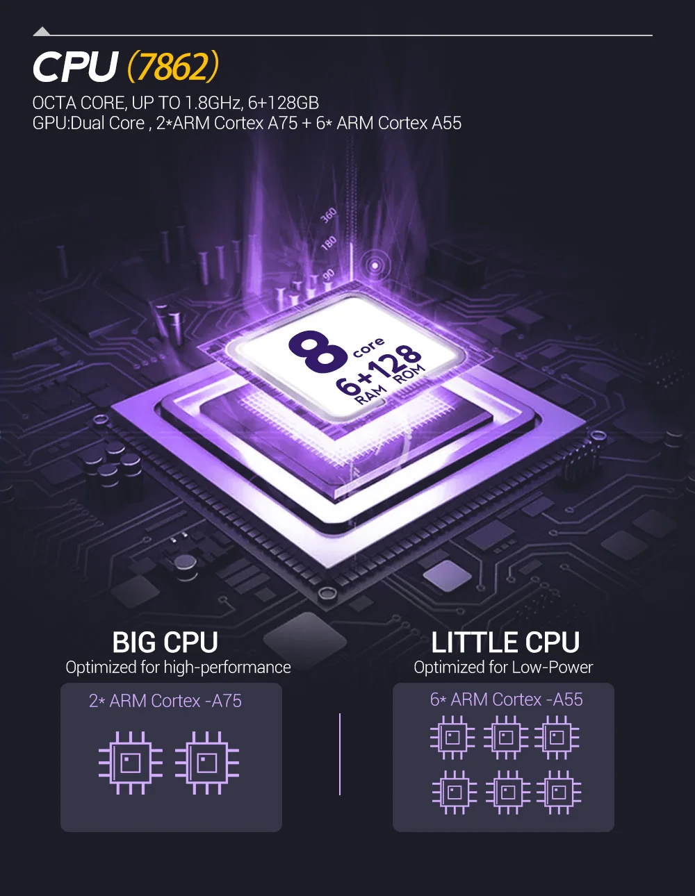 7862 лучший чип на рынке в настоящее время, он работает быстрее, чем все другие типы. Балл ANTUTU составляет 181063, что лучше, чем PX6, 9853 , PX5 и всех других типов 4 + 64G на рынке. По сравнению с другими типами радио, радио 7862 может загружать больше видов приложений android с android market, и приложение может работать лучше.