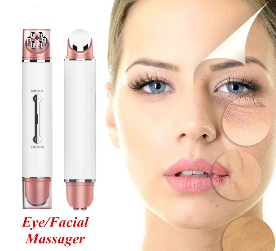 2 в 1, светодиодный фотонный Массажер для кожи вокруг глаз и лица