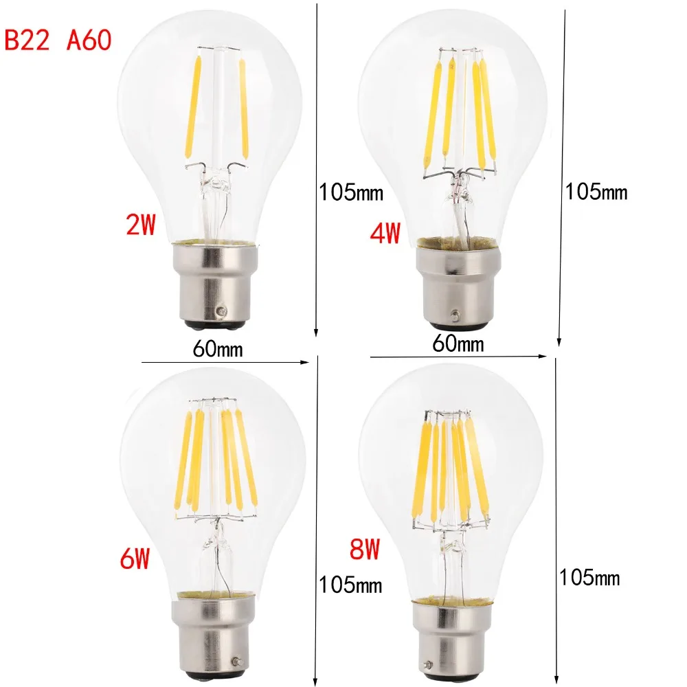 Светодиодсветодиодный лампа накаливания E27 2 Вт 4 Вт 6 Вт 8 Вт Ретро лампа Эдисона 220 В B22 A60 винтажный светильник в виде свечи с холодным и теплым белым светом