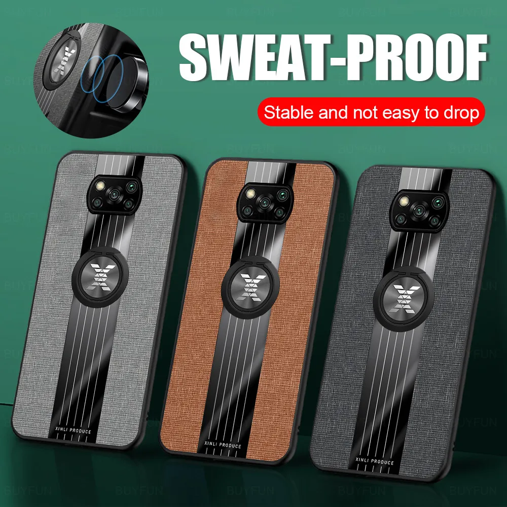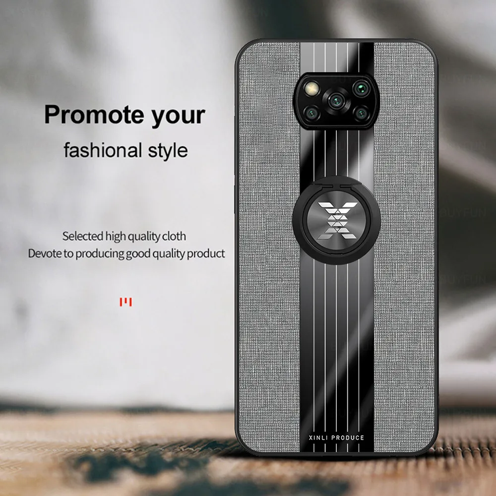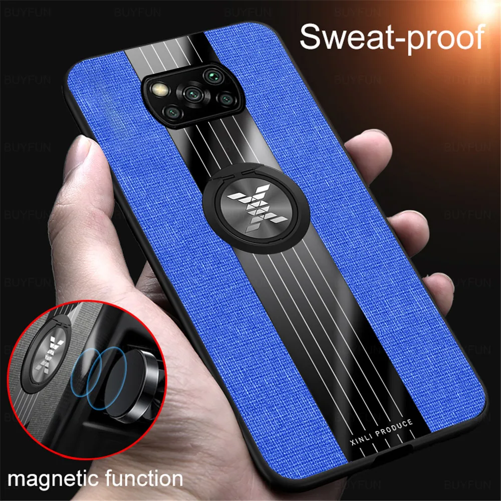 Чехол с кольцом-держателем для Xiaomi Poco X3 Pro, тканевый Жесткий...