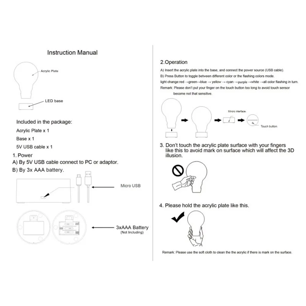 Function 8battery powered acrylic laser usb Hologram night lamp