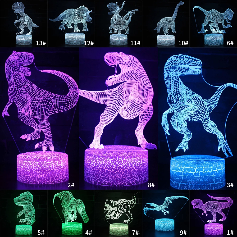 СВЕТОДИОДНЫЙ ночник в виде динозавра, мультяшный модный Настольный светильник с дистанционным управлением для детей, рождественский подарок, детская игрушка, 16 цветов