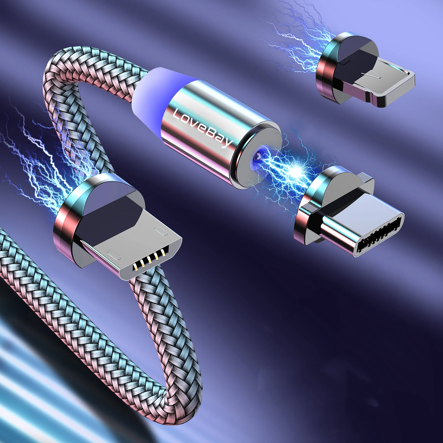 Кабель для зарядки магнитный Lovebay, Micro-USB Type-C Lightning, 2...