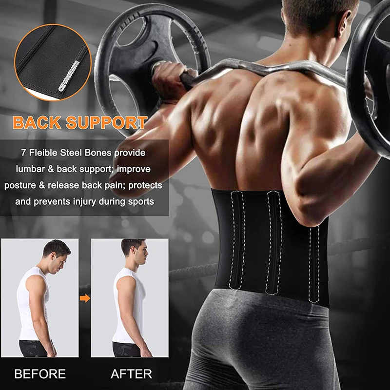 3 усиленные акриловые косточки обеспечивают тонну поддержки на вашей стороне, если у вас есть проблемы с нижней частью спины, наш триммер для похудения талии для мужчин, как компрессионный связующий вокруг талии, чтобы предложить поясничную поддержку, помогает облегчить боль и улучшить осанку, согревает мышцы, стабилизирует позвоночник. Поддержка, которая помогает предотвратить боль в спине и растяжение мышц пиломатериала.