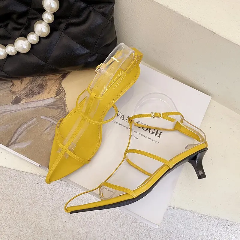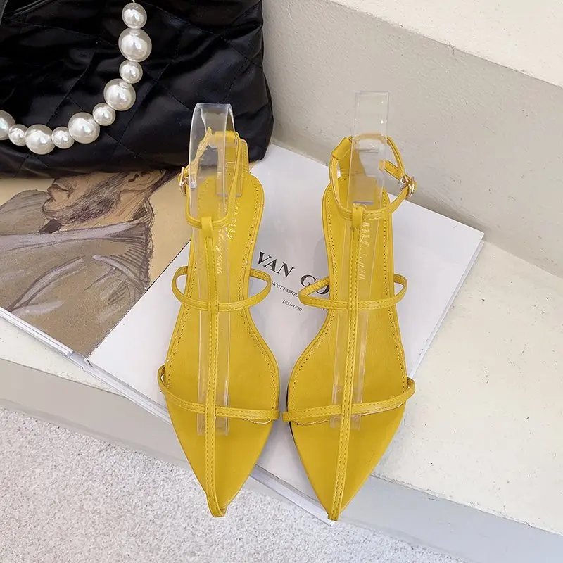 Пикантные желтые сандалии; Женские босоножки; Новые летние остроносые туфли с острым носком на шпильке; BC362