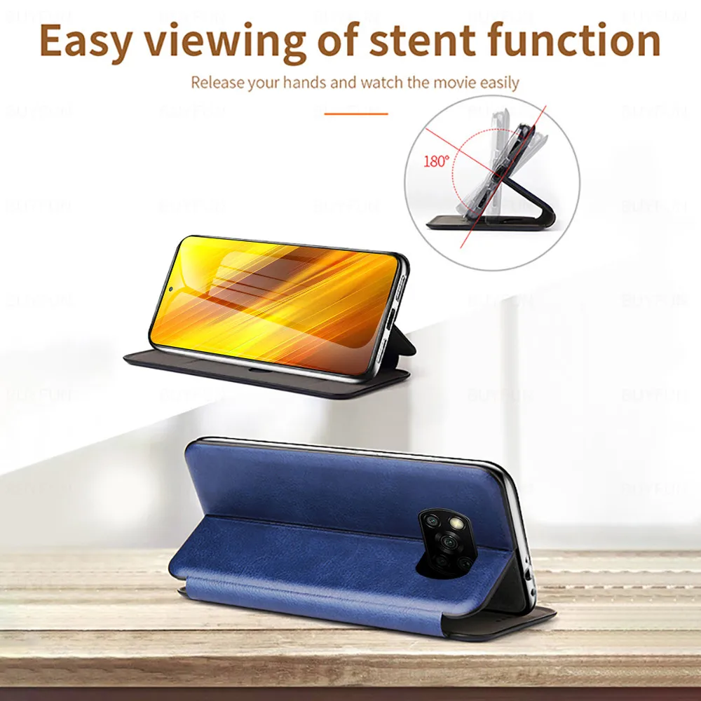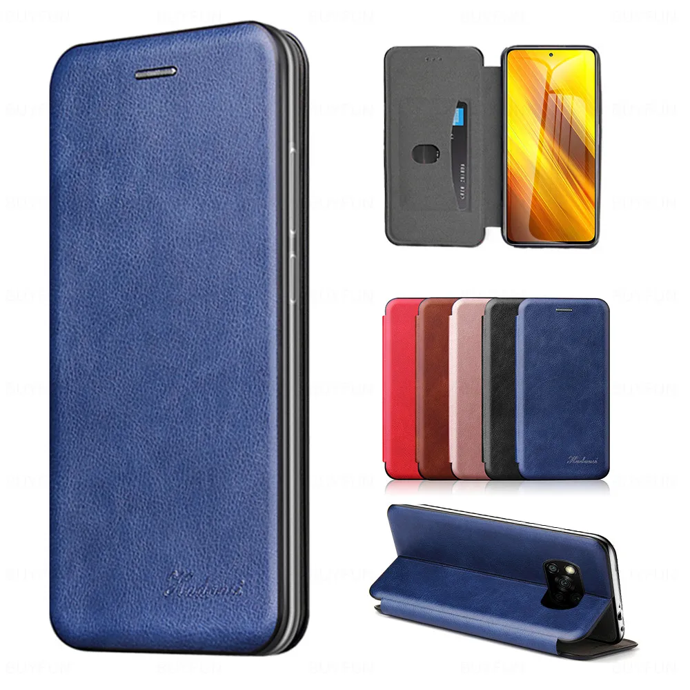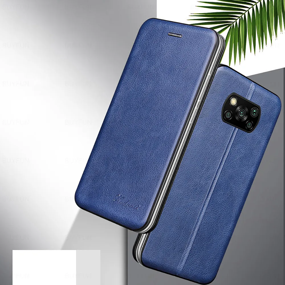 Кожаный чехол для xiaomi poco x3, Магнитный флип-чехол для xiaomi p...