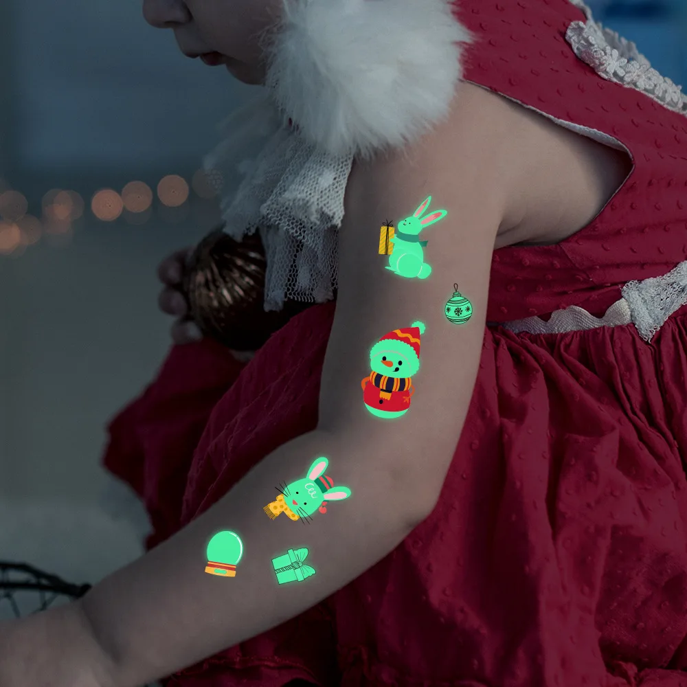 Светящаяся татуировка на тело, наклейка для детей, Рождество, Санта Клаус, дерево, подарок, снежный человек, светится в темноте, переводная имитация татуировки WM002