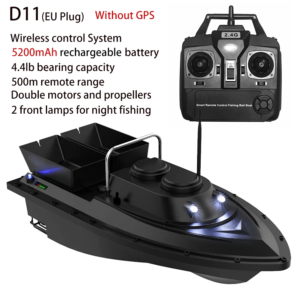 D18B:Беспроводное управление с функцией GPS позволяет выпустить приманку далеко в озере, реке и водохранилище. 3 контейнеры для наживки могут вмещать около 4,4 фунта приманки для всех игровых рыб. Простота в эксплуатации для любителей рыбалки или начинающих, а также для детей.Особенности:Функция GPS помогает установить 4 произвольных точки позиционирования, и лодка может быть вперед и назад на основе точки, которую вы устанавливаете.При обнаружении потери сигнала или низкого заряда батареи лодка автоматически вернется в исходное положение через 15 секунд. Не беспокойтесь о потере.ЖК-дисплей пульта дистанционного управления будет отображать несколько данных для вас, таких как питание батареи, расстояние, компас, положение и светильник.3 контейнера для наживки с несущей способностью около 4 фунтов для большего количества наживок. (Примечание: контейнер для наживки без функции самостоятельного возврата, вы должны вытянуть его назад руками после освобождения.)Беспроводное управление и Круизный переключатель с фиксированной скоростью позволяют выпустить приманку далеко. (Дистанционный диапазон: 400-500 метров)Двойные двигатели и двойные пропеллеры делают лодку легкой в спорте и кролировании.1 передняя часть из белого светильник и 2 задних синий ночной Светильник s для ночной рыбалки и кормления.Лодка-приманка питается от перезаряжаемой батареи емкостью 9600 мАч (в комплекте).Обтекаемый корпус уменьшает Водонепроницаемость и устойчивость к волнам 5 уровней.Пульт дистанционного управления питается от четырех батарей AA (в комплекте).V-образная конструкция крючка, более эффективно носить крючки и приманки одновременно.Спецификация:Лодка-приманка: 5200 мАч/9600 мАч (в комплекте)Материал: АБС + металлПульт дистанционного управления: 4 батарейки типа АА (в комплекте)Время зарядки: около 10 часовПриманка подшипник Ёмкость: кг/2 кг/4,4 фунтов лёгкий нейлоновый тросДистанционный диапазон: 400 - 500 м/437 - 540 ярдовРазмер приманки: 500*270*230 мм/19,7*10,6*9,1 дюймовВес лодки-приманки: прибл. 1,9 кг/4,2 фунтов лёгкий нейлоновый тросВес посылка: прибл. 2,65-2,87 кг/5,8-6,3 фунтов лёгкий нейлоновый тросПосылка:1 * Лодка-Приманка (с перезаряжаемой батареей)1 * пульт дистанционного управления (с 4 батареями АА)1 * антенна1 * Руководство пользователя1 * зарядное устройство2 * Запасные пропеллеры