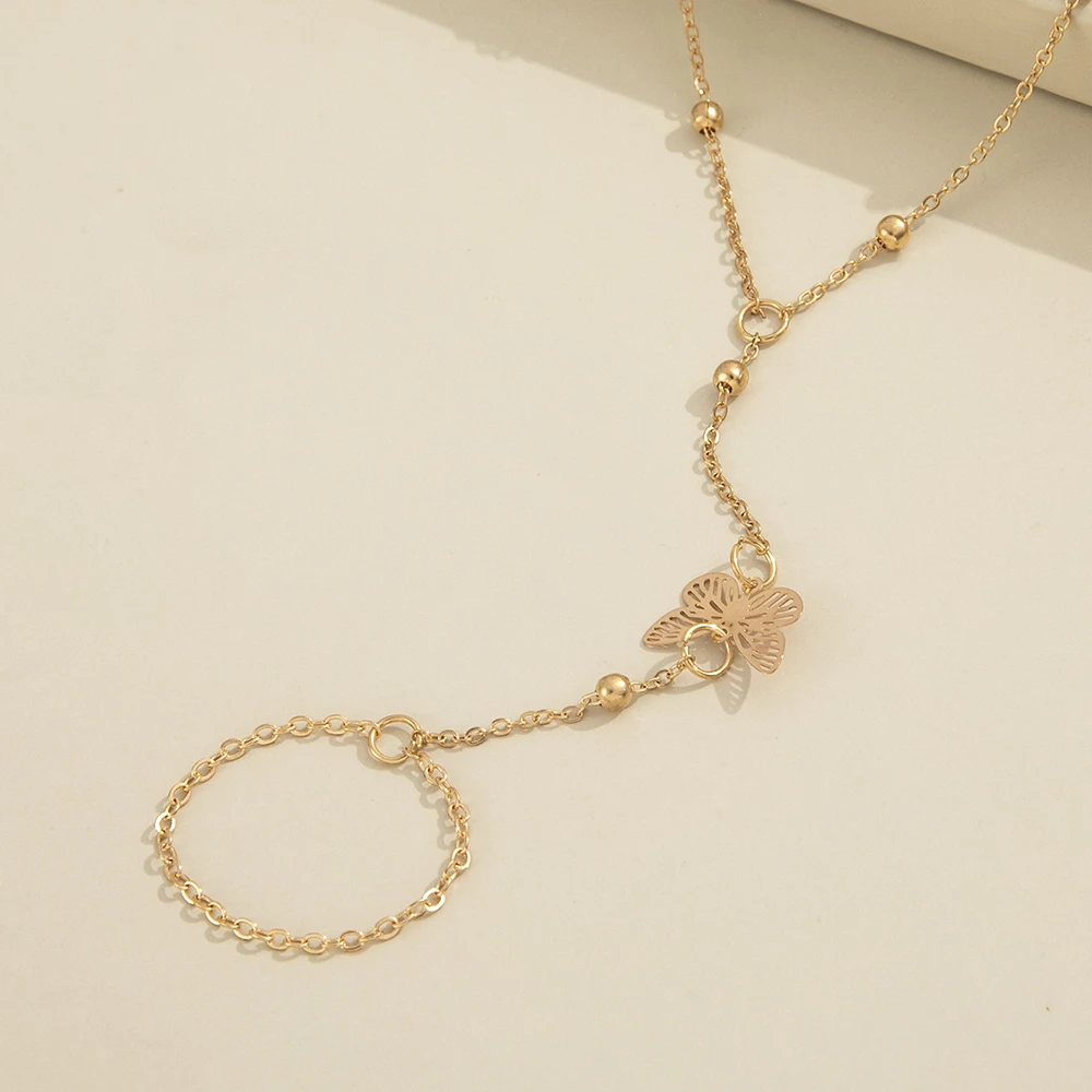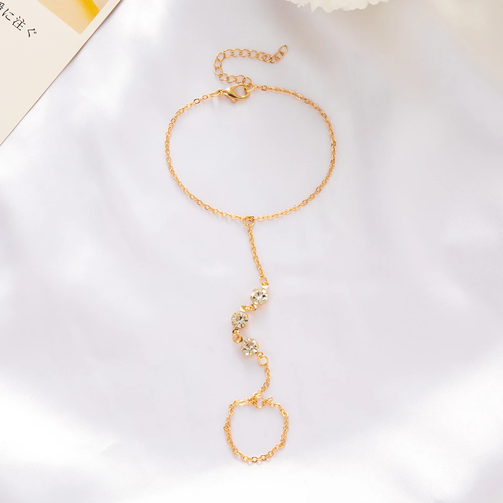Женский браслет на ногу, с двумя цепочками и бусинами, ручной работ...
