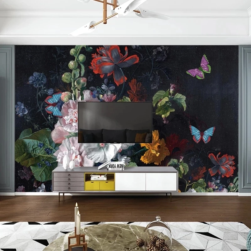 Фото на заказ Европейский 3D стереоскопический рельеф цветочные цветы бабочка картина маслом Фреска для гостиной диван обои водонепроницаемые