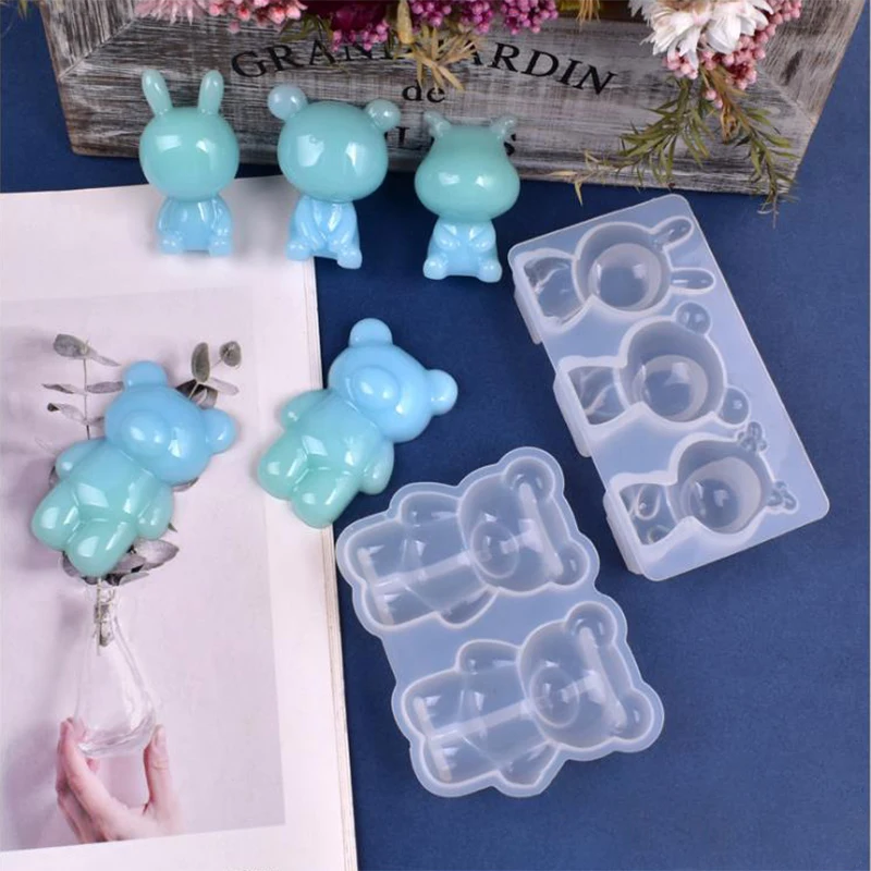 3D мультфильмы силиконовая формочка в виде животного милый медведь кролик украшение эпоксидная смола литье Плесень Для DIY ремесла брелок Подвески ювелирные изделия