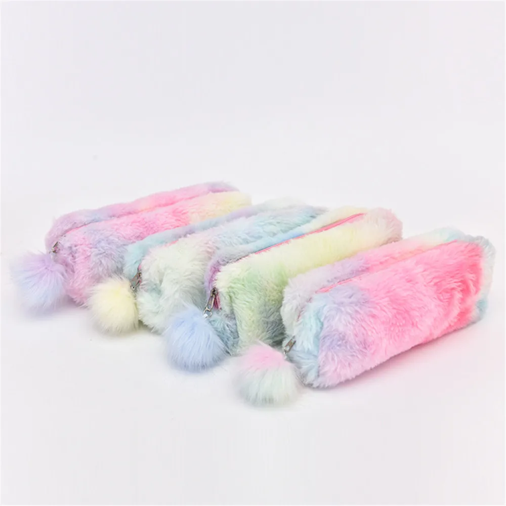Чехол для карандашей, плюшевый, с градиентным рисунком, для девочек