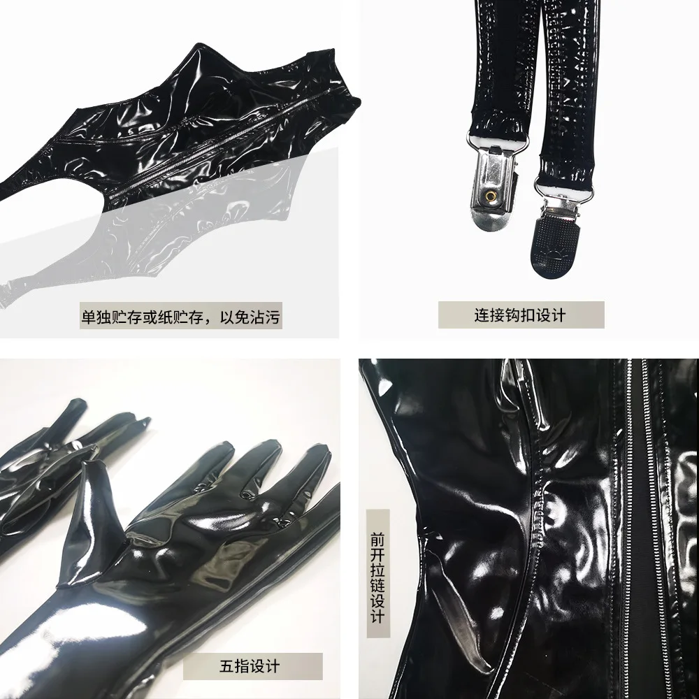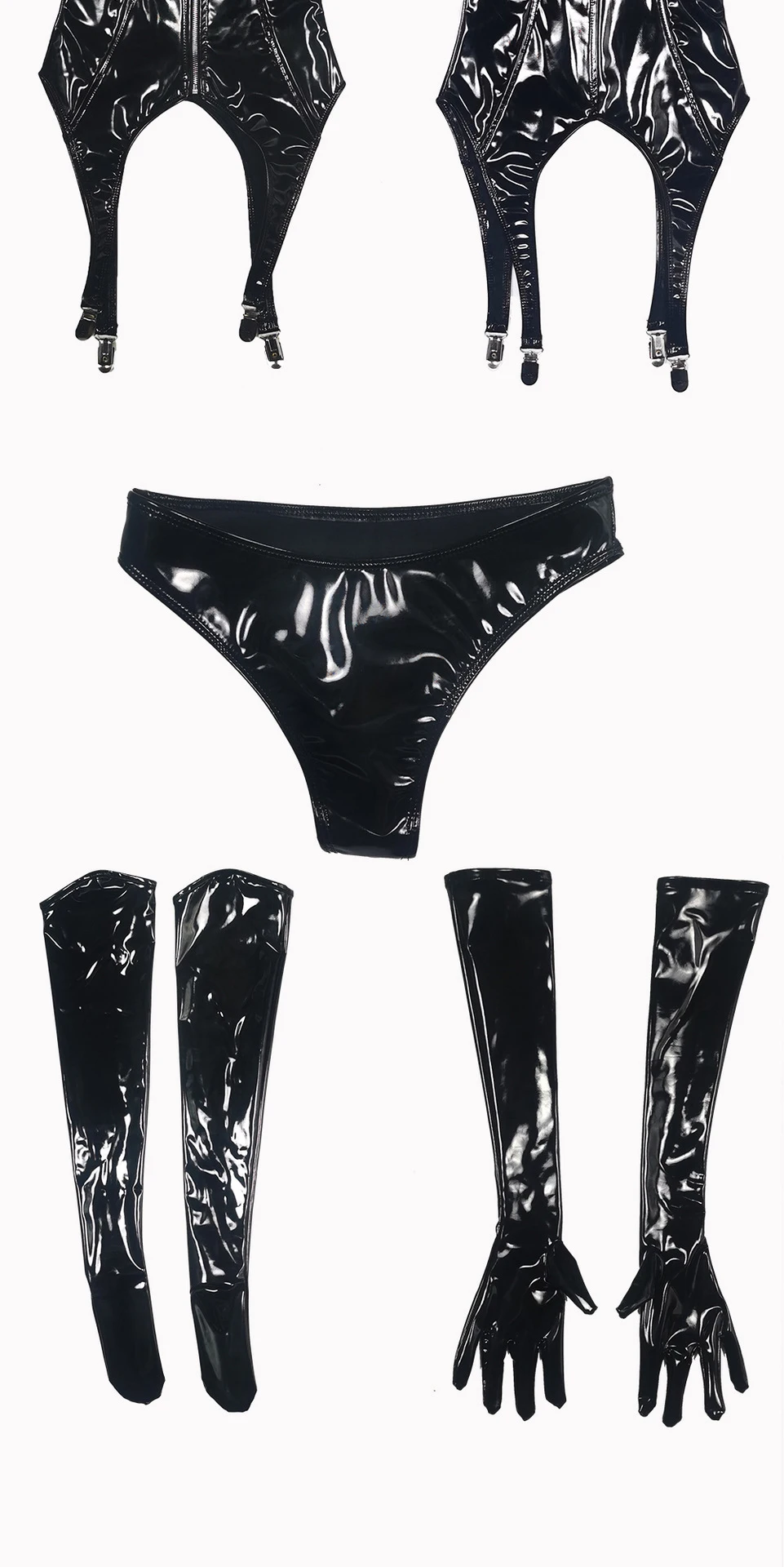 Костюм размера плюс горничной из ПВХ, соблазнительное эротическое боди, 4 шт.комплект, черного цвета