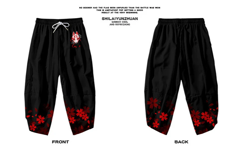 Традиционная одежда с принтом лисьей маски, кимоно, штаны для мужчи...