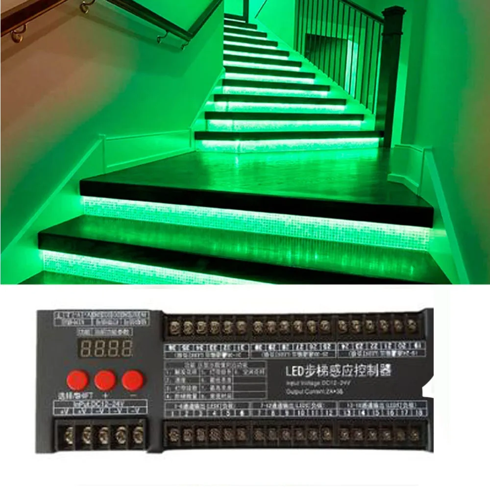 Светодиодная лента с датчиком движения для лестницы, световой приглушаемый светильник для помещений, гибкая светодиодная лампа для лестницы, 36 каналов, 12 В24 В