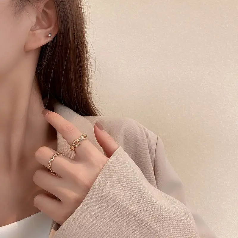 Набор женских колец золотого цвета, оригинальный дизайн, кольцо с геометрическим узором