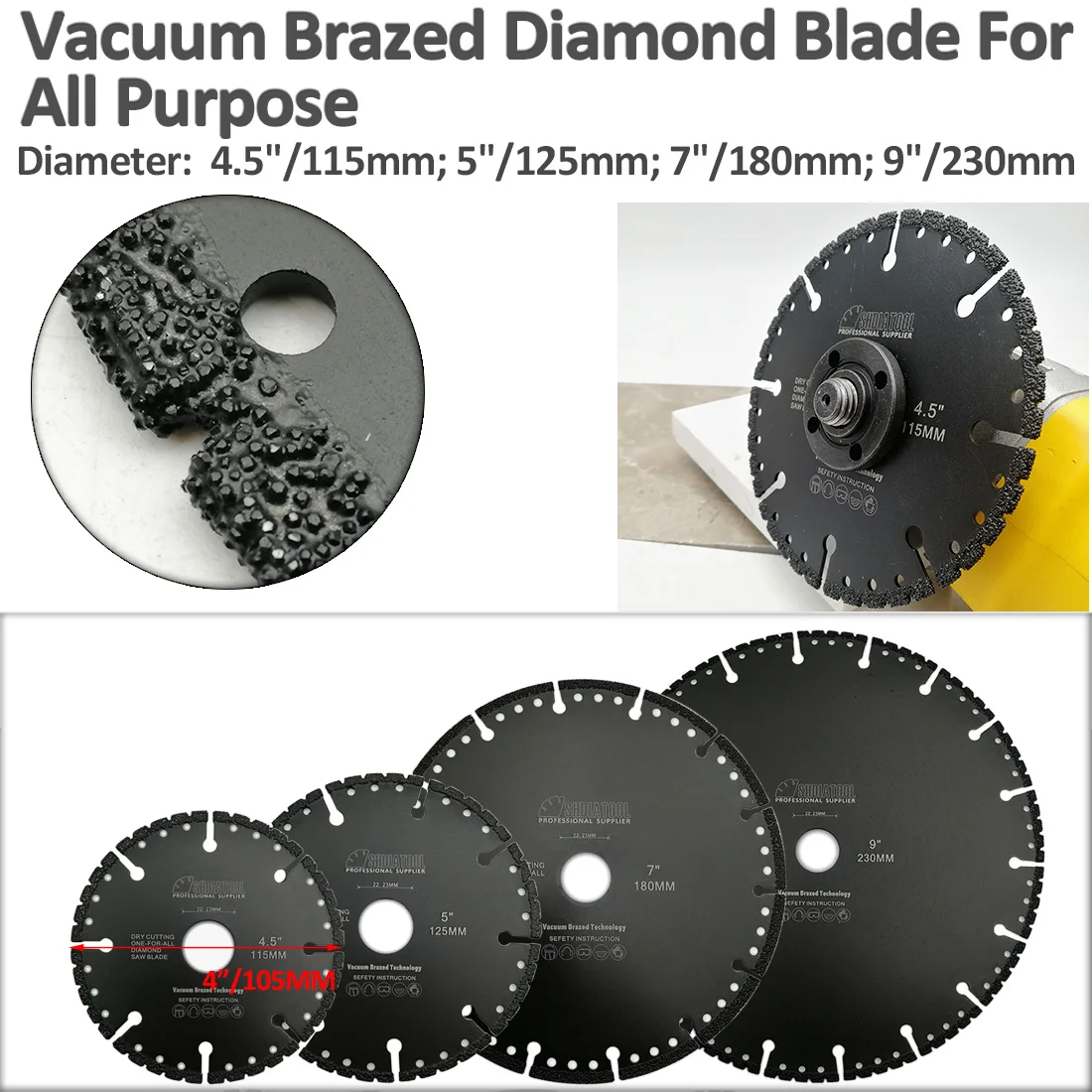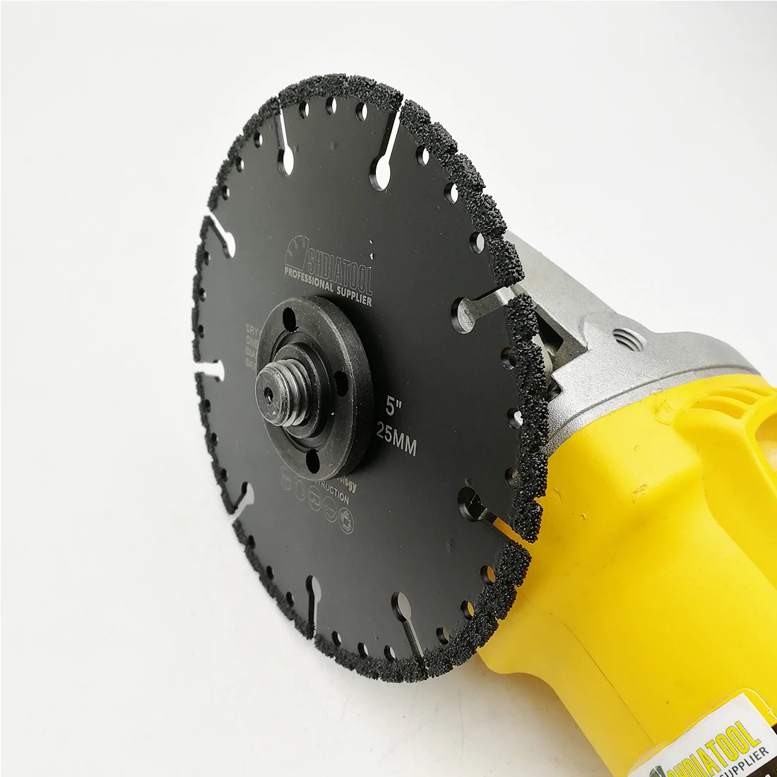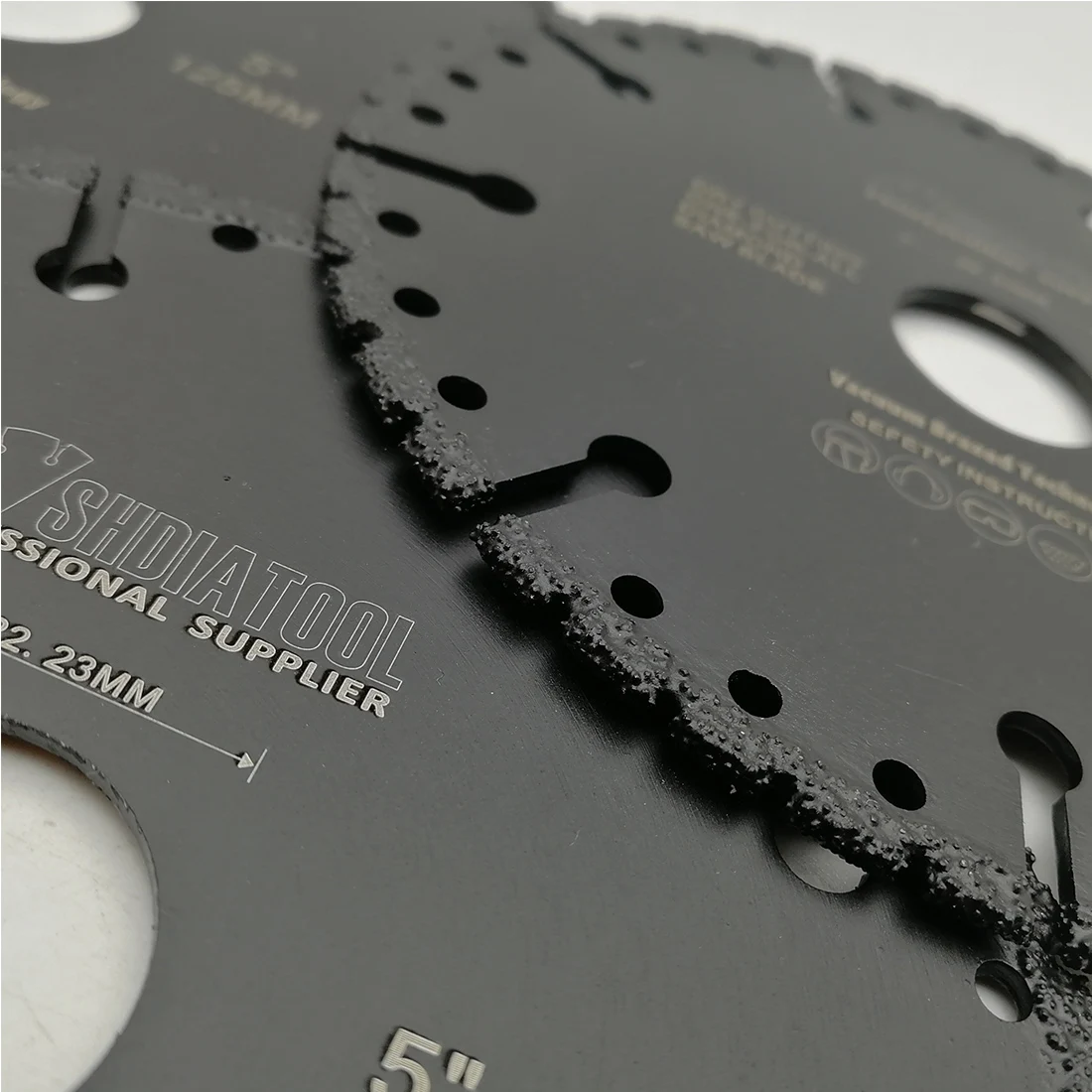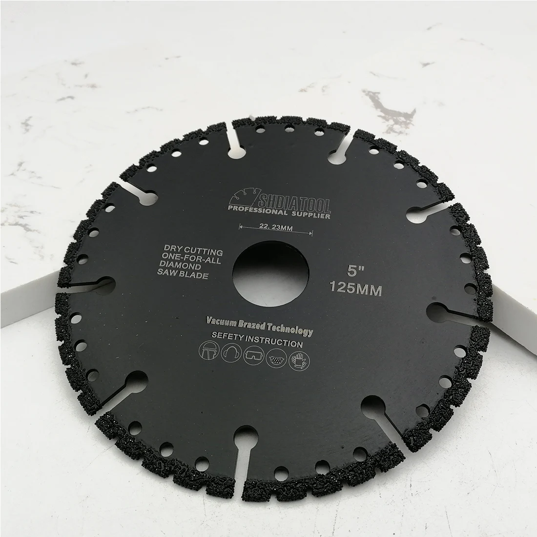 = Описание продукции: =Товар: 1 шт. 125 мм вакуумное паянное алмазное лезвие для всех целейСпецификация: диаметр 125 мм/5"Толщина 2,5 ммДиаметр отверстия: 22,23 мм/7/8"Количество: 1 шт.Характеристика:Используя технологию вакуумной пайки, высокая концентрация промышленных алмазных частиц премиум класса постоянно припаивается к краю стального сердечника, создавая небьющиеся и чрезвычайно Жаростойкие сегменты, которые могут быстро отрезать почти все материалы без водяного охлажденияРазработано для использования одного лезвия для всех целей. Пожарные, спасательные команды, полицейские и подрядчики по демонтажуИспользуйте влажные или сухиеПрименение: предназначен для резки прочных материалов, включая гранитный мрамор, алюминий, Авто панели кузова, чугун, медные трубы, гофрированные кровли, гипсокартон, ковкого чугуна трубы, противопожарные двери, кладки, пластик, ПВХ, арматура, железобетон, стальной металл, штукатурка и многое другое= В =Другое доступный размер: 4,5 "/115 мм, 5"/125 мм, 7 "/180 мм, 9"/230MM5 "/125 мм, 7"/180 мм, 9 "/230 мм